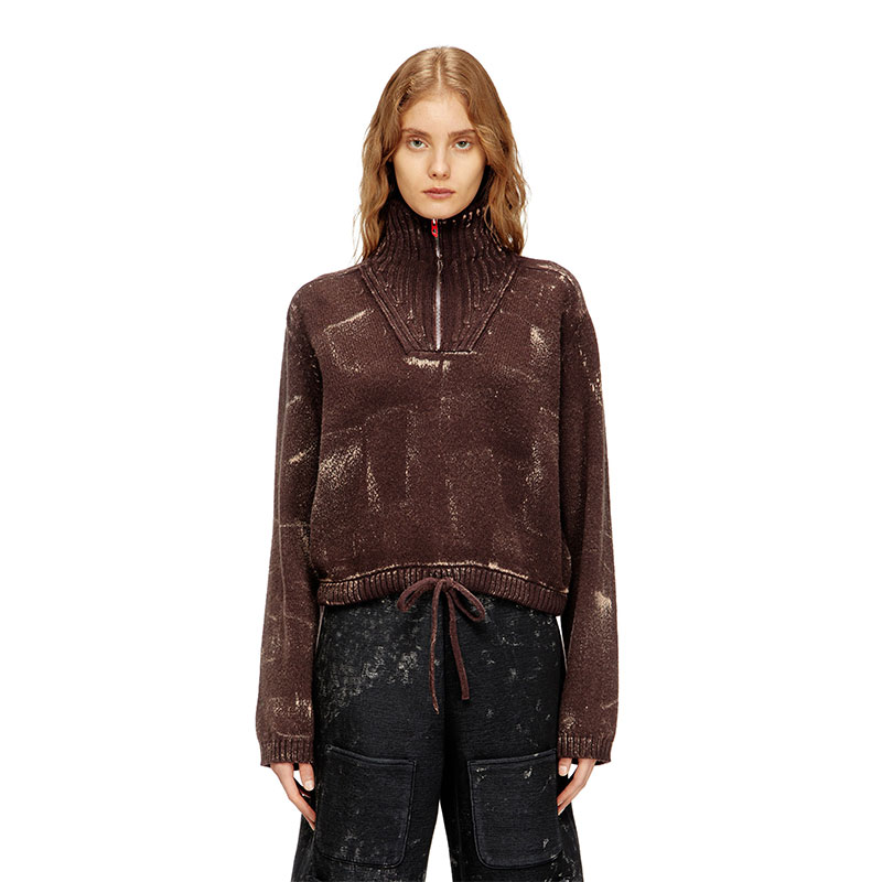 Diesel Women Half-zip jumper with distressed effect Brown A218200GSBW
