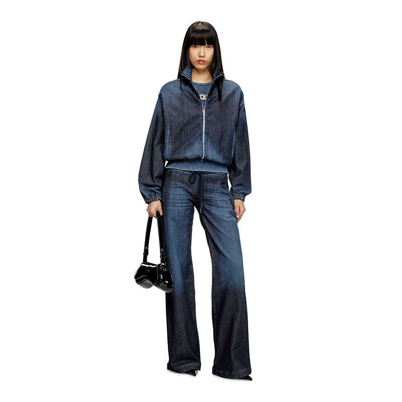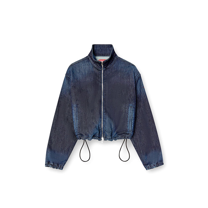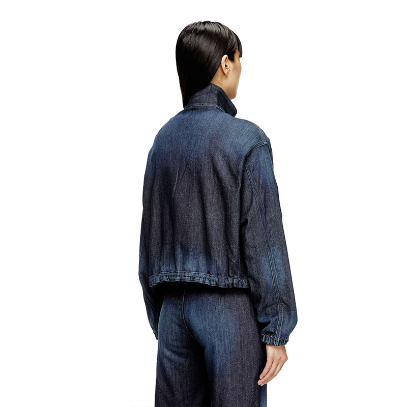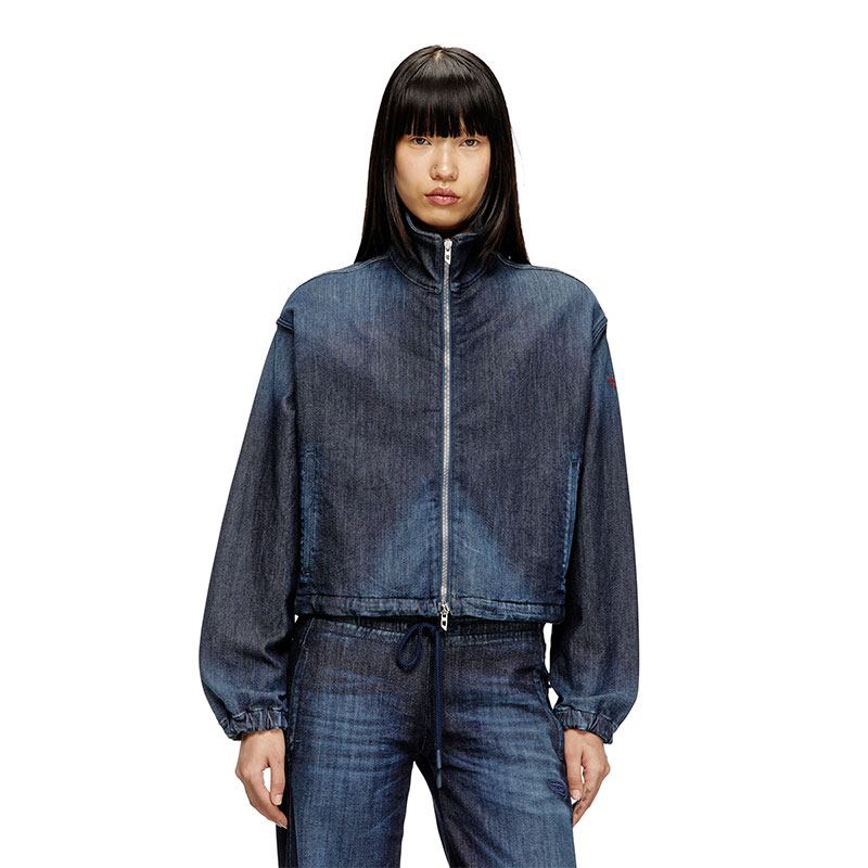 This light women's jacket is made from JoggJeans for the utmost comfort. The silhouette features slightly dropped shoulders, welt pockets, and a red D logo embroidered on the sleeve.