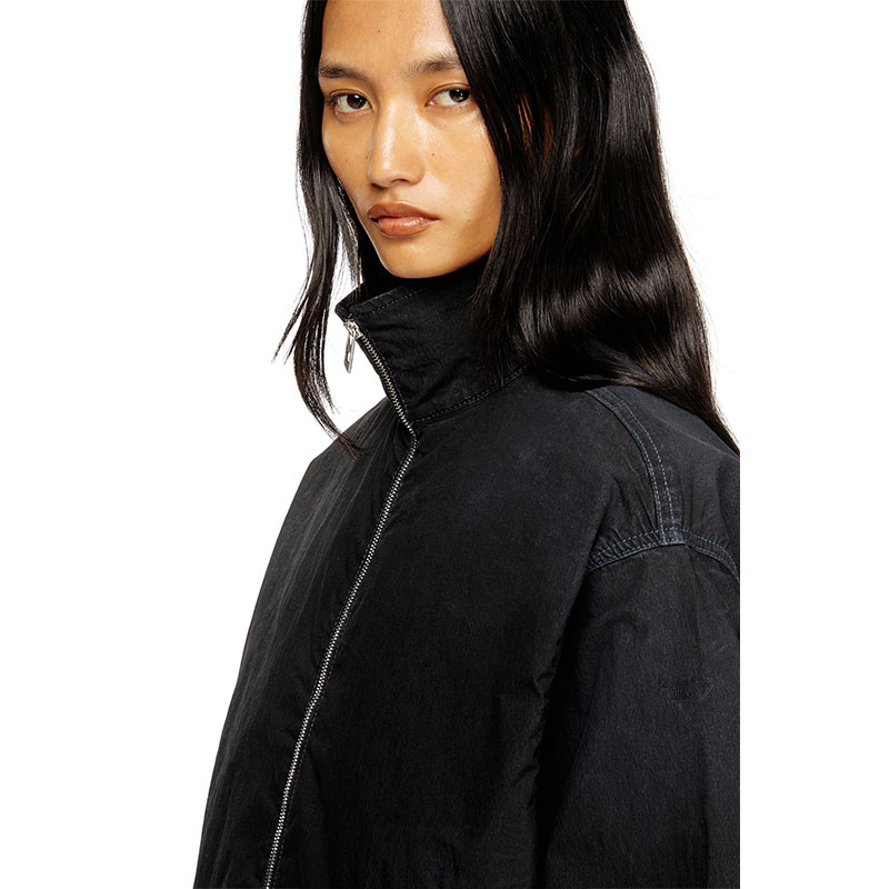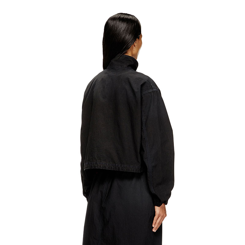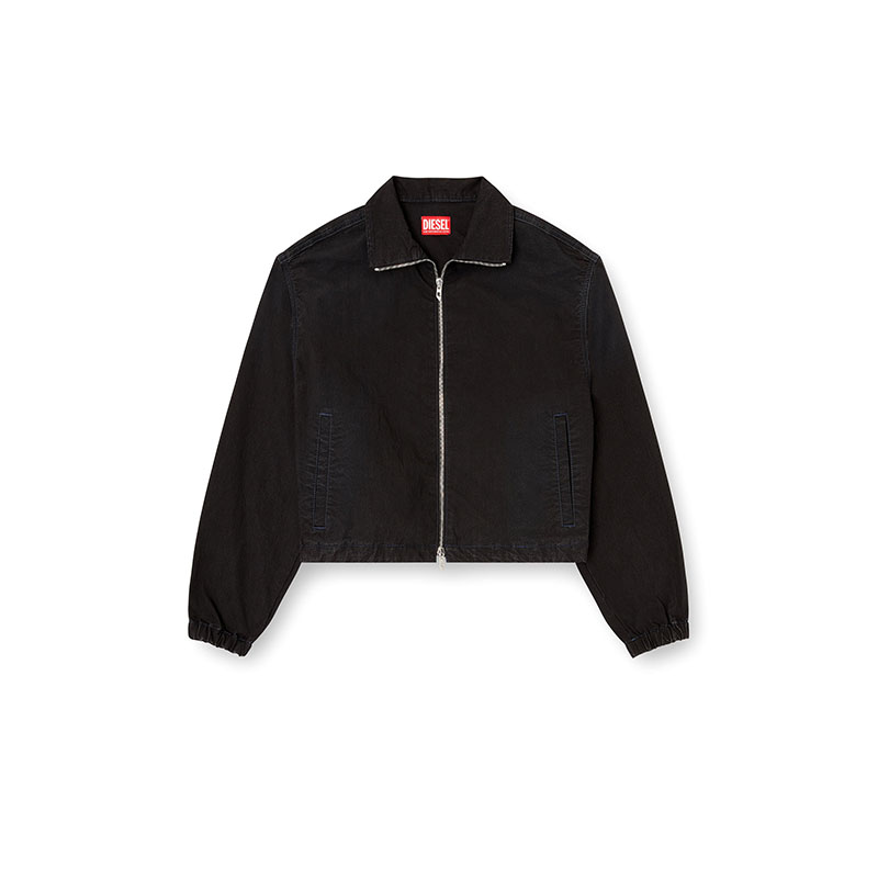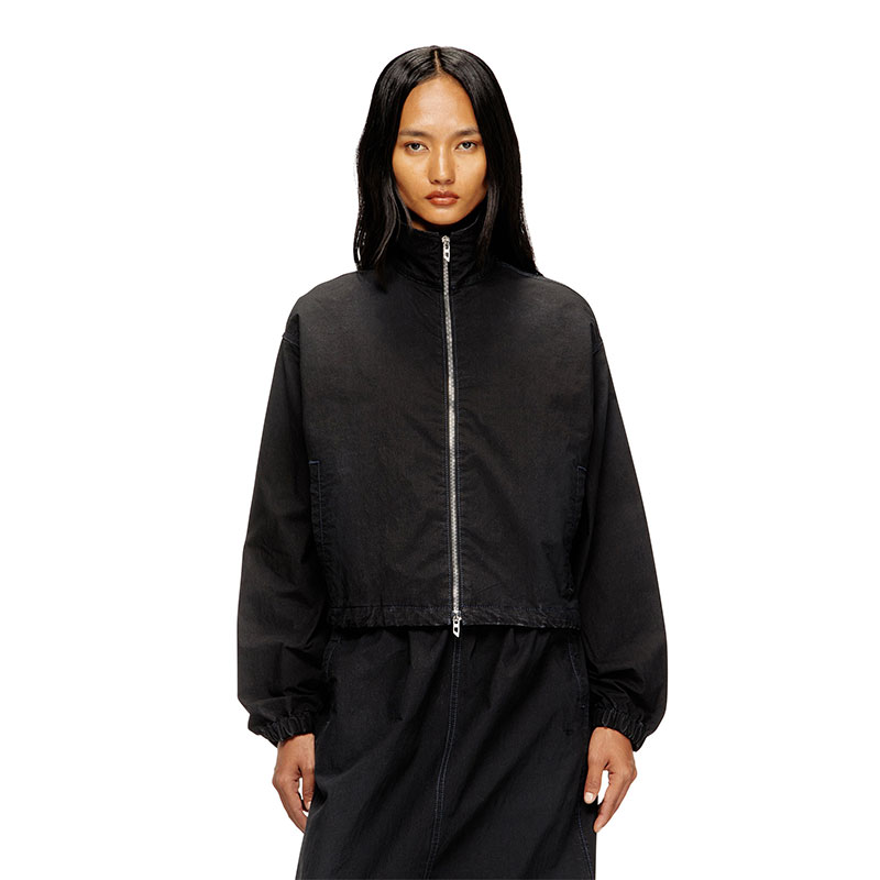 This light women's jacket is made from JoggJeans for the utmost comfort. The silhouette features slightly dropped shoulders, welt pockets, and a red D logo embroidered on the sleeve.