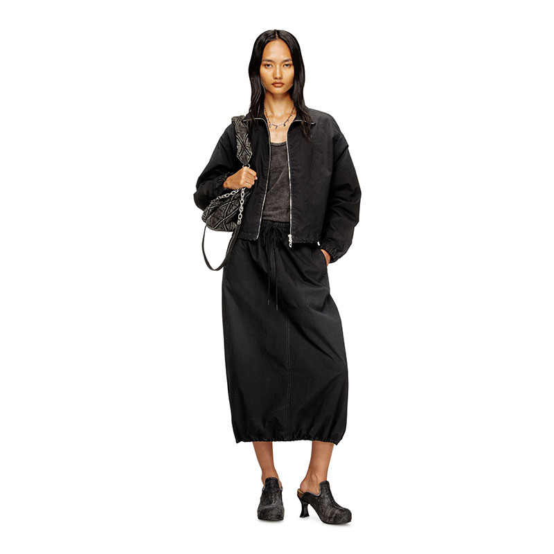The black canvas-weave fabric combines a technical attitude with a lightweight feel. The crisp texture is similar to sailcloth, while the wash process creates a clean, lightly worn-in denim effect. Made with 50% regenerative cotton.