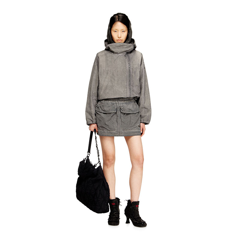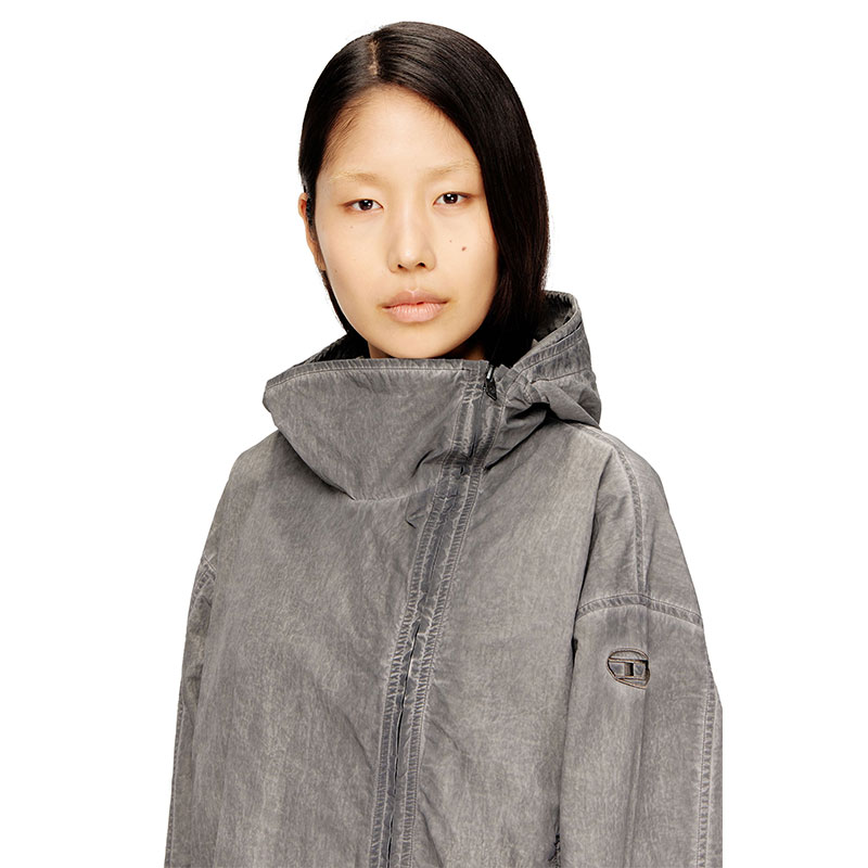 Women’s hooded windbreaker jacket with an off-centre zip fastening and a drawstring-adjustable hem. Cut for a relaxed fit, this style is made from high-performance Taslan fabric and cold-dyed with pigments to impart a lived-in fade full of tonal depth. An embroidered Oval D logo accents the sleeve.