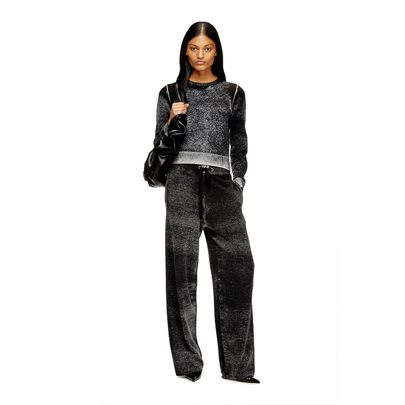This women’s cotton sweater has been specially printed on the inside, resulting in a softened, uneven colour. The effect of this technique is particularly visible on the ribbed trims, where the tone is decidedly lighter. It's shaped for a regular fit and hallmarked with a minimal embroidered logo on the chest.
