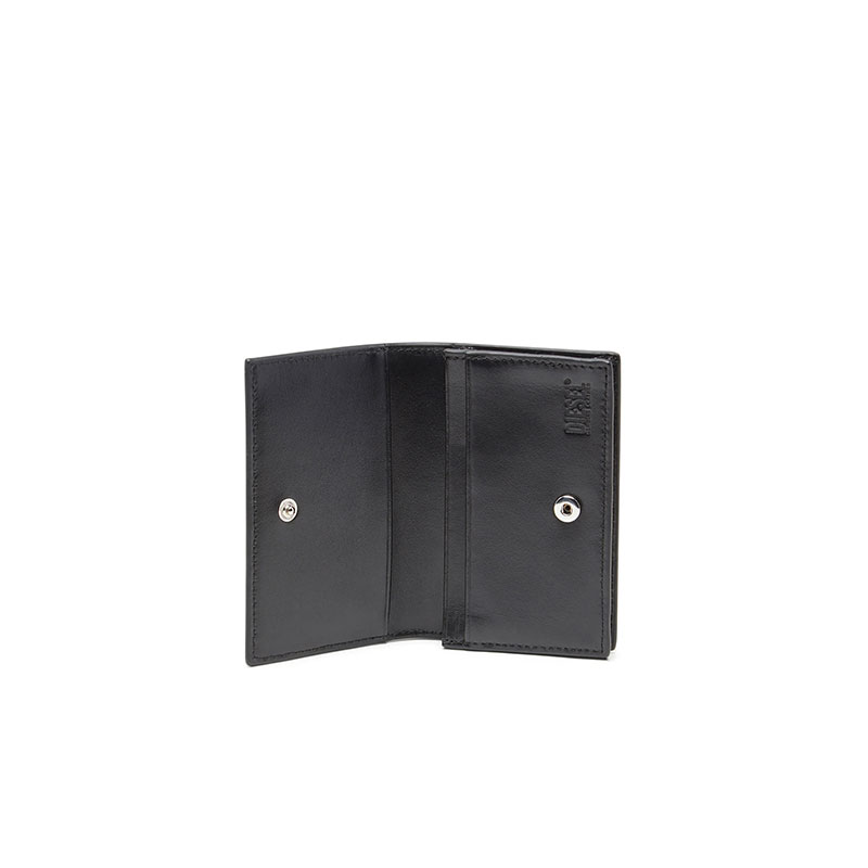 This women's card wallet is made responsibly using supple nappa leather sourced from Leather Working Group certified tanneries. It has a bi-fold design secured with a single snap button. The metal Oval D plaque – a signature of Diesel’s iconic 1DR bag – is inlaid with enamel in the shade of the leather.