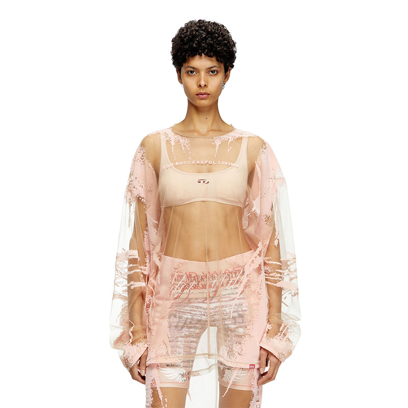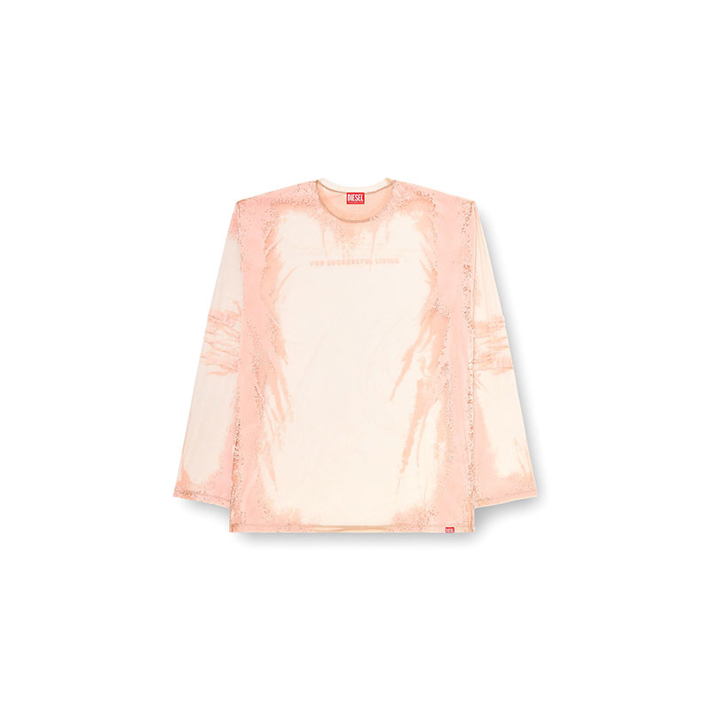 Men's long-sleeved T-shirt made from technical fabric designed to be see-through on most of the garment. This crewneck tee is featured in the Remaster collection, a celebration of the underground club scene and Diesel's long-standing alliance with the DJ community. Each piece is printed with custom graphics or quotes chosen by DJs participating in the project as a personal tribute to the music that changed their lives.