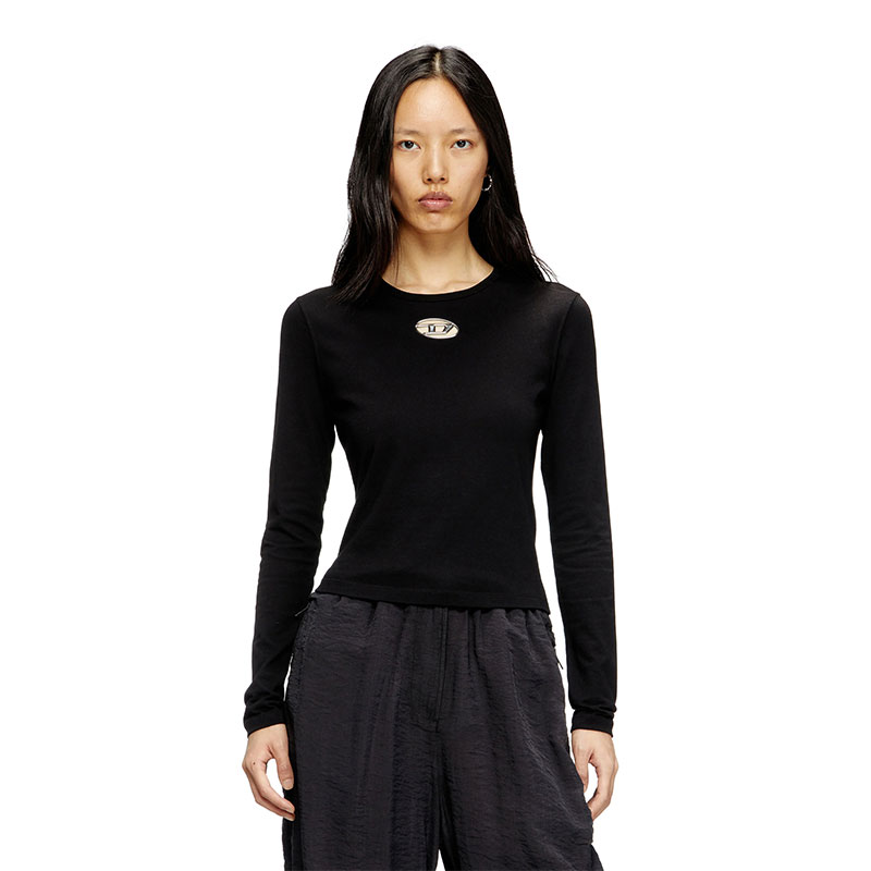 This women's long-sleeve top is built from stretch jersey containing organic cotton. An injection-moulded Oval D breaks up the slim silhouette with a subtle cut-out on the chest.