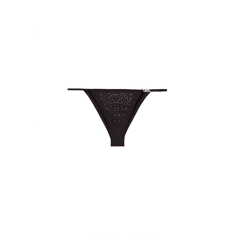 Designed in a high-leg tanga silhouette, these women's black briefs feature slender hip-framing straps and a subtle Oval D plaque embellishment. They're crafted from ultra-comfortable microfibre fabric and embellished with crystals for a touch of sparkle.