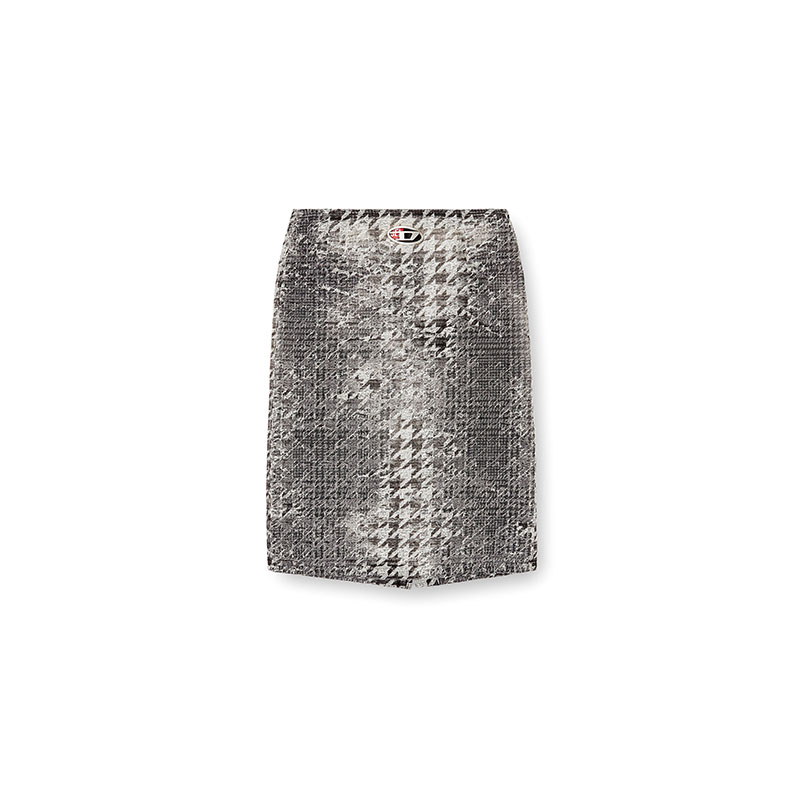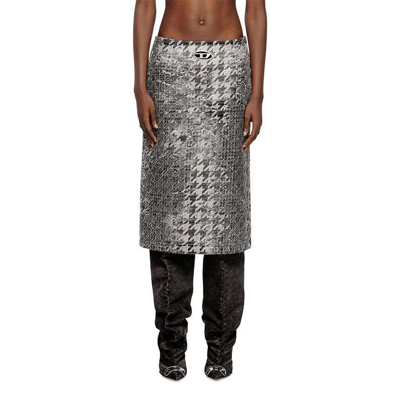 Part of the Fall Winter 2025 Runway looks, this women's A-line midi skirt features the iconic Oval D logo as a cut-out metal plaque.