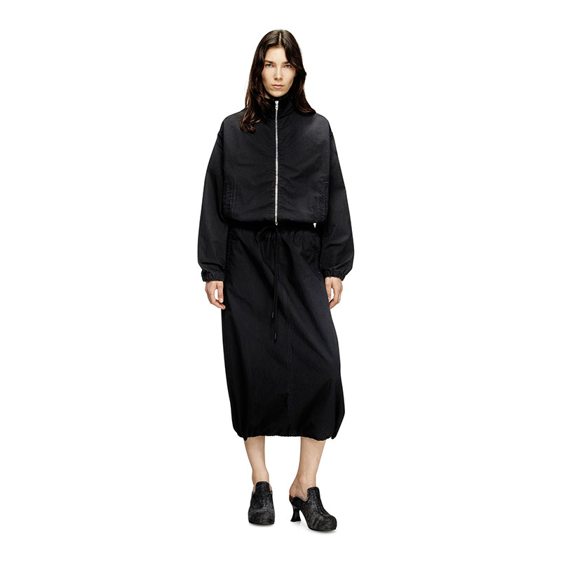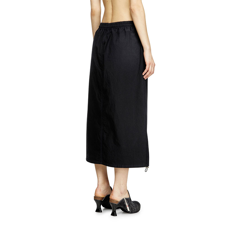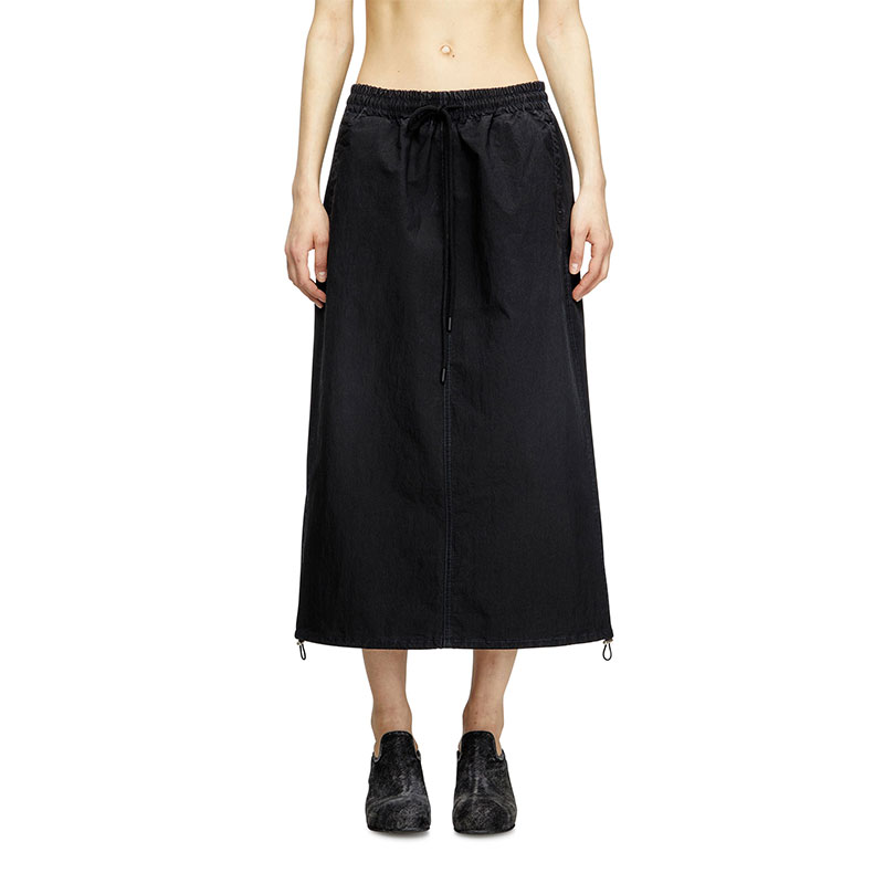 Women's skirt made from JoggJeans for the utmost comfort, featuring a stretchy drawstring waist and a mid-length, A-line silhouette.