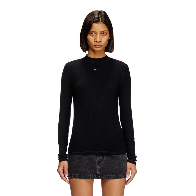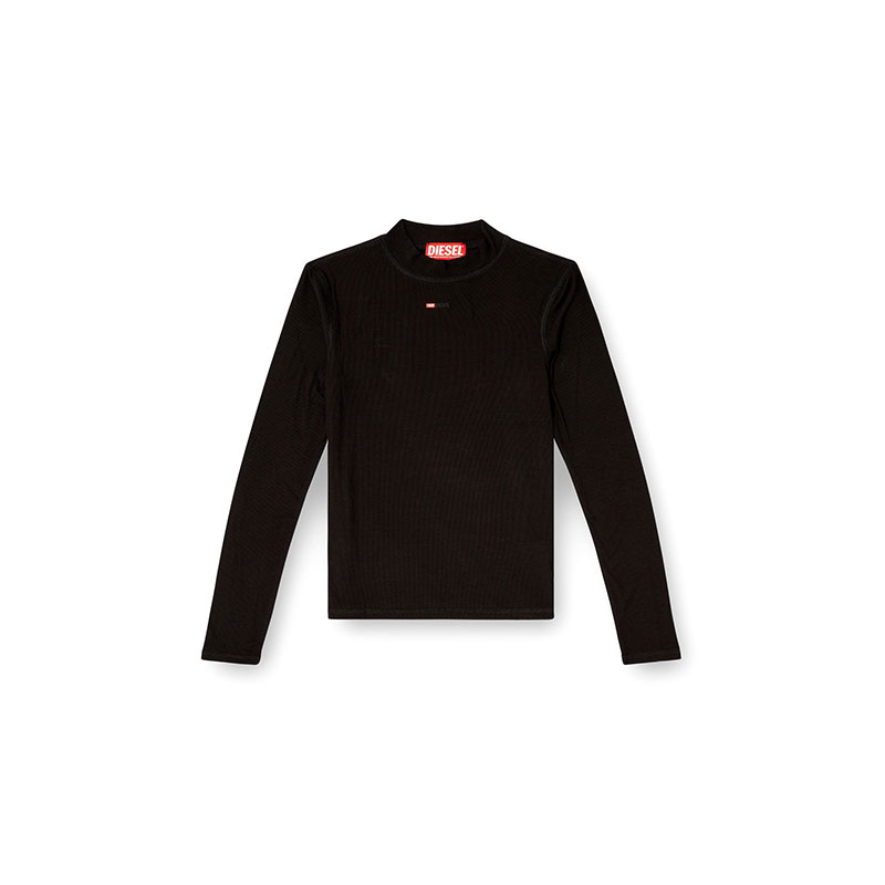 Designed for all genders, this long-sleeve top is embroidered with a micro version of the Denim Division 'D' logo right beneath the mock neck. It’s cut from ribbed jersey made using ECOVERO fibres mixed with stretch and has a close-fitting silhouette.