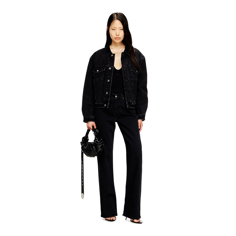 Inspired by archival pieces, this jacket nods to '80s aviator gear with its oversized shoulders and slim-cut hem, creating a squared, slightly cropped silhouette. Crafted from fix denim with a percentage of organic cotton in a black wash, it's detailed with a tonal corduroy collar and lightly padded for warmth. The fabric is treated for a subtle lived-in look.