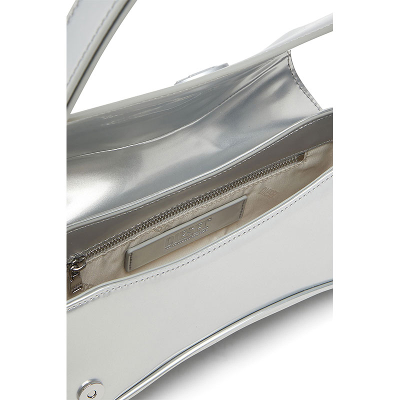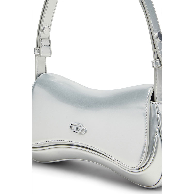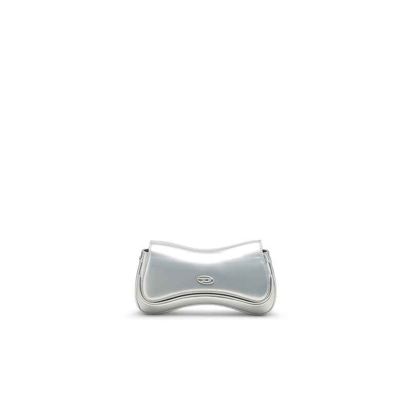 Whether day or night, this women’s metallic bag takes the spotlight. It’s crafted from shiny silver PU in the iconic ‘Play’ silhouette – a nod to video game controllers. A tonal metal Oval D plaque accents the flap closure. Carry it tucked under your arm or attach the strap to go hands-free.