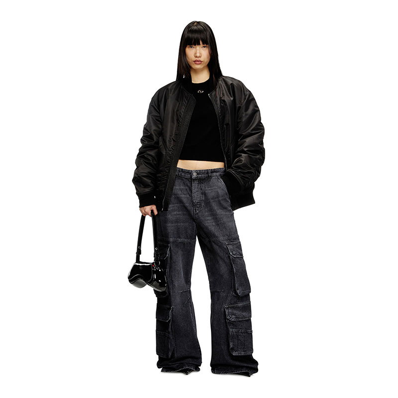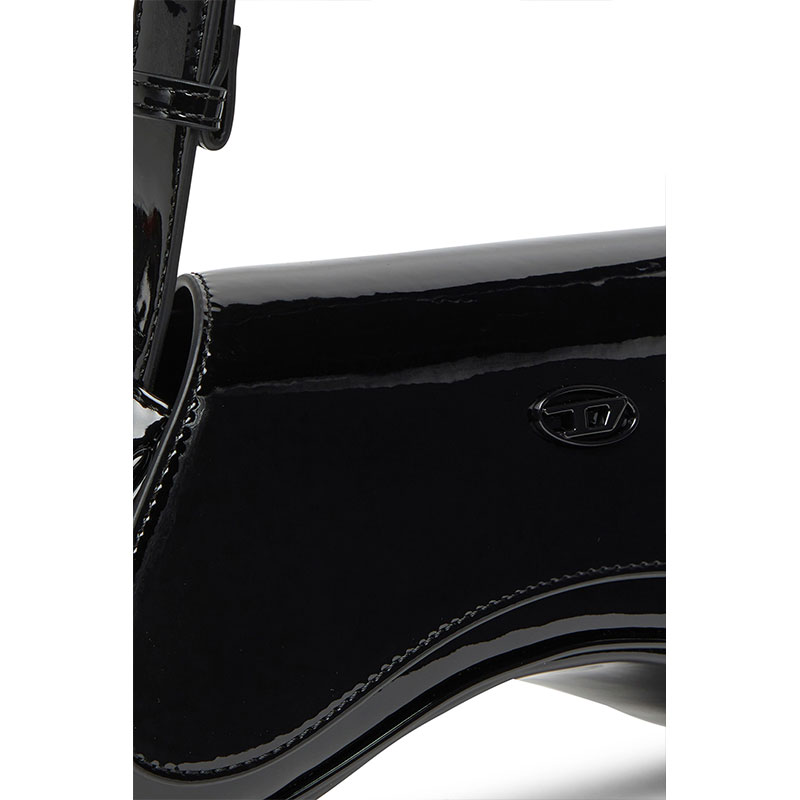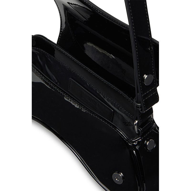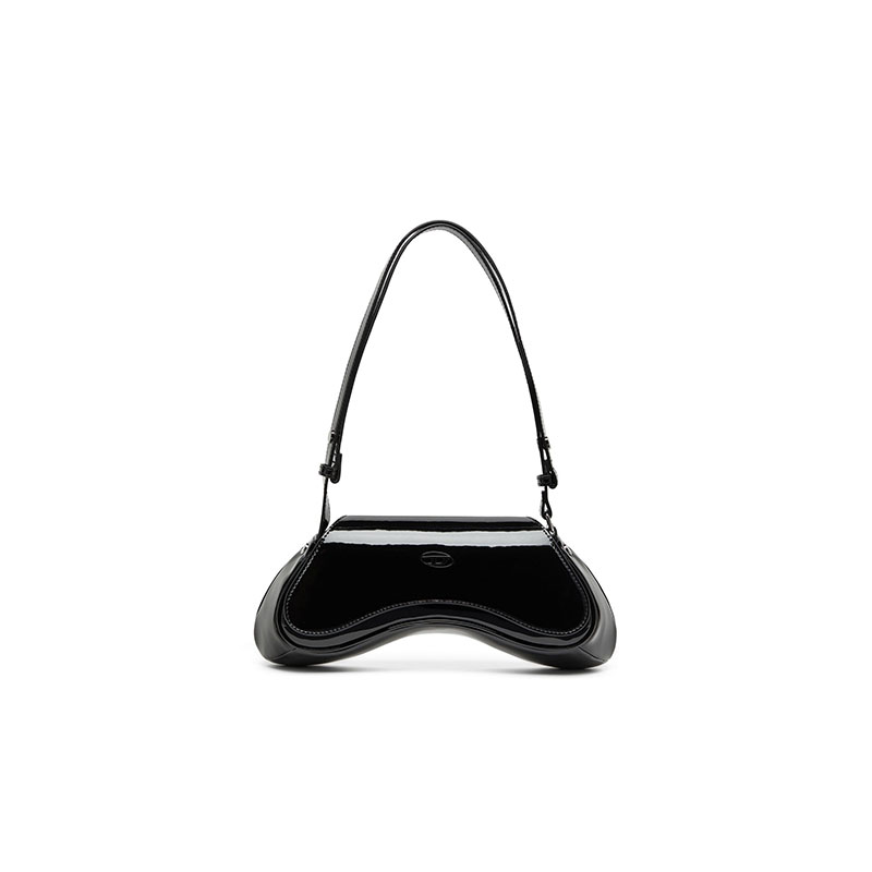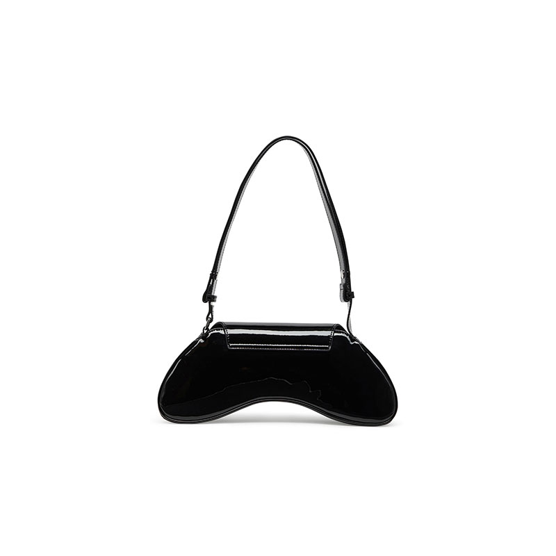 This women’s shoulder bag is ultra-sleek and glossy. Crafted using a percentage of lower-impact recycled materials, it has a playfully asymmetric, structured shape inspired by video game controllers. A matching Oval D plaque in electroplated metal embellishes the flap closure.
