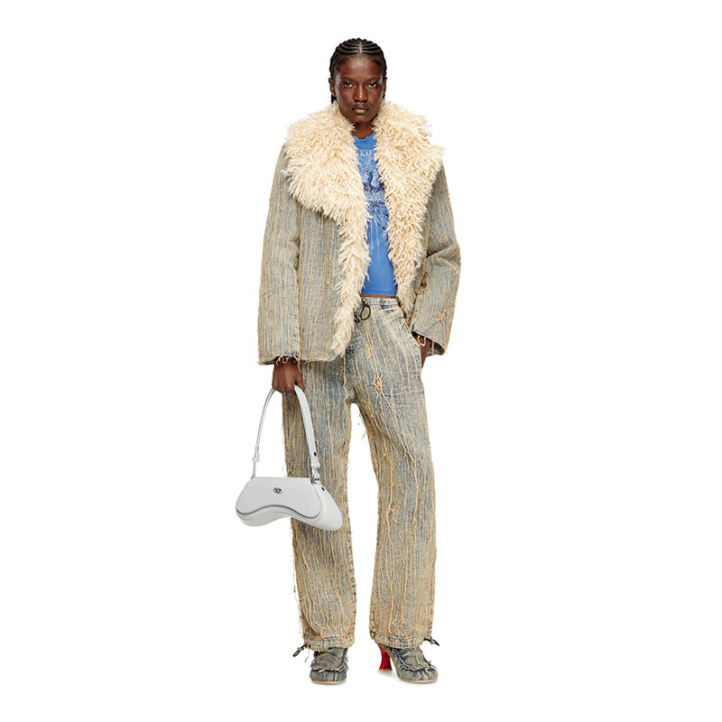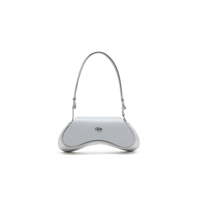 This women's bag looks sleek and playful thanks to its sinuous shape inspired by gaming controllers. It's crafted from smooth leather with a semi-gloss finish, embellished by shiny Oval D hardware on the flap. The shoulder strap is adjustable and fits crossbody.