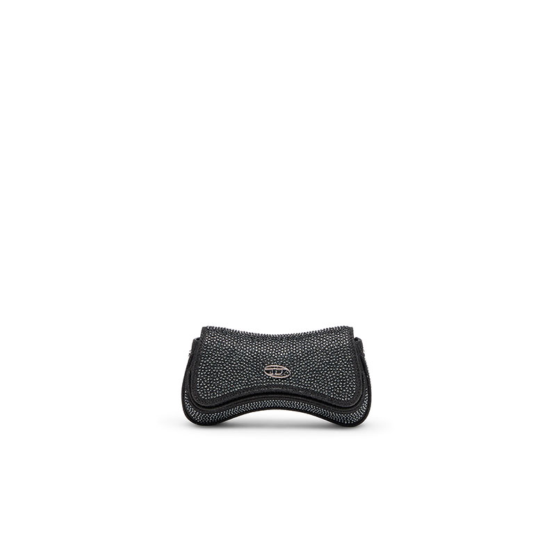 Women’s mini crossbody bag with the iconic ‘Play’ silhouette. The curvy shape – inspired by video game controllers – is rendered in irresistibly sparkly, crystal-encrusted Lurex – a luxe twist made for the party circuit. The bag is finished with a metal Oval D plaque and can be worn as a clutch.