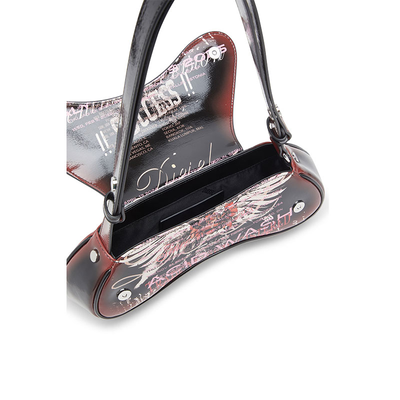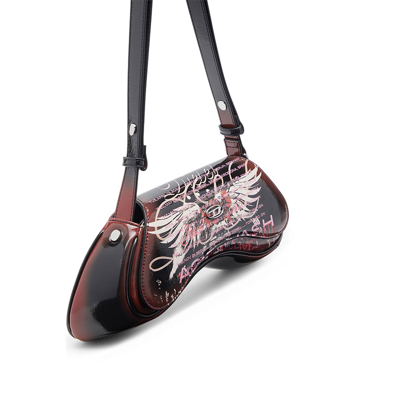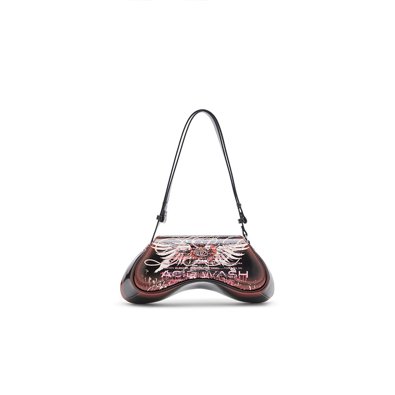 Diesel Women Play-Shoulder bag in printed glossy PU Black/Brown X10221P6019