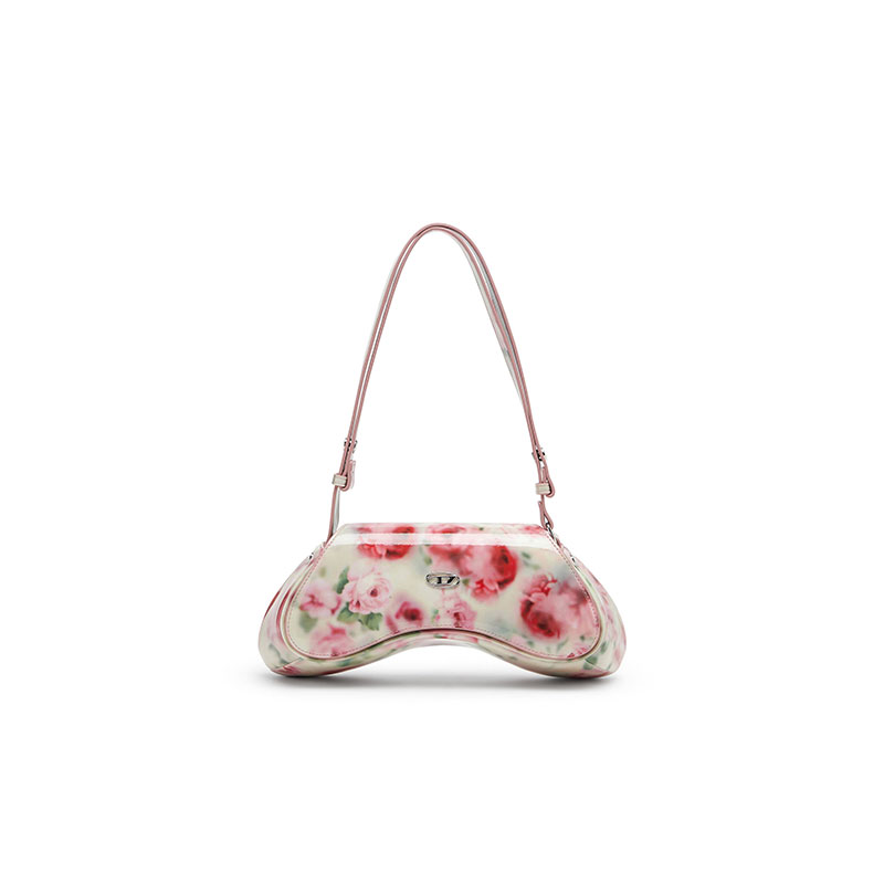 Diesel Women Play-Shoulder bag in printed glossy PU White/Pink X10221P6019