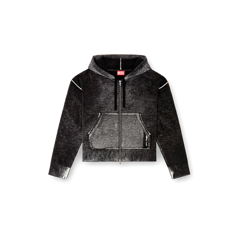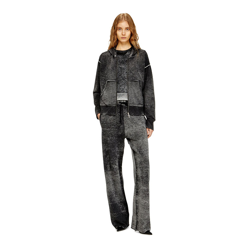 Diesel Women Reverse-print hooded cardigan in wool Black/Grey A220360TKCY