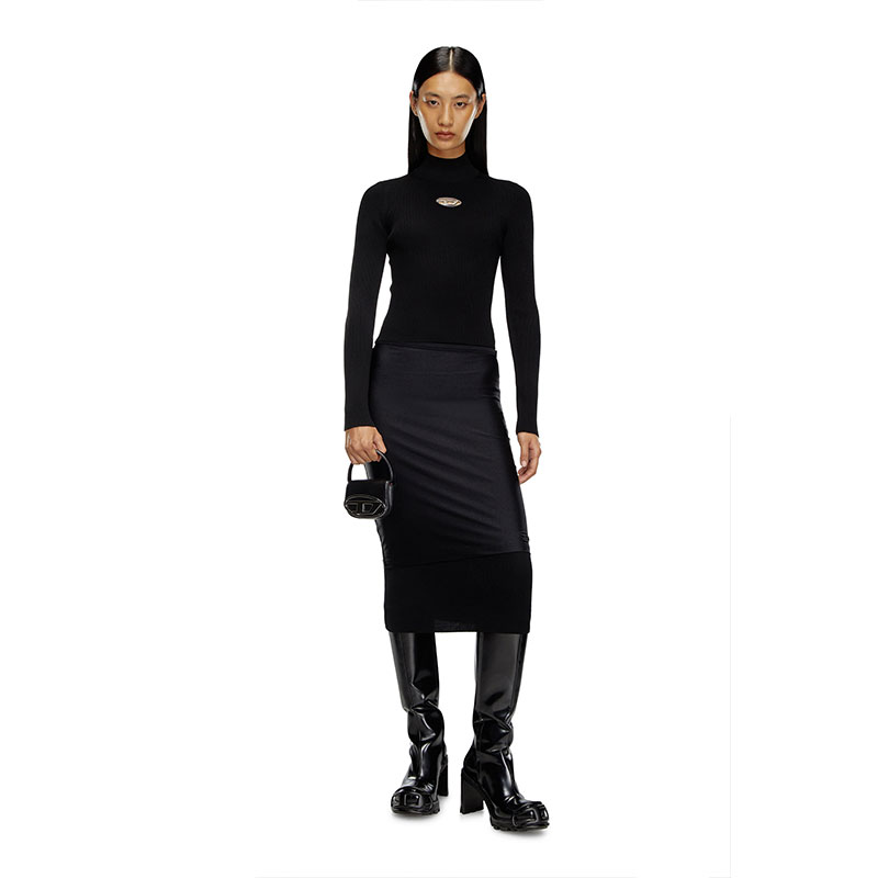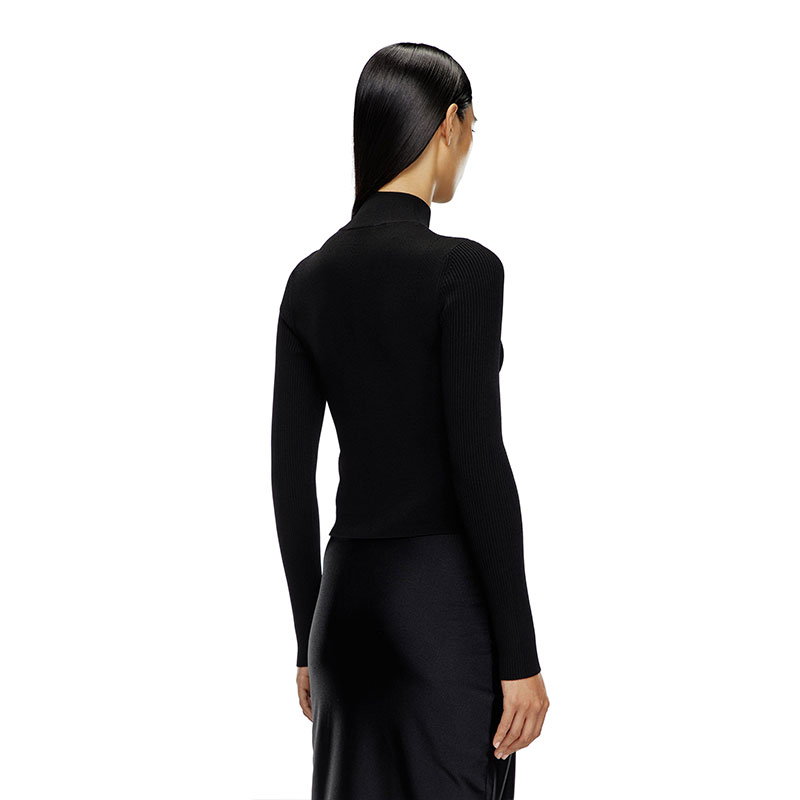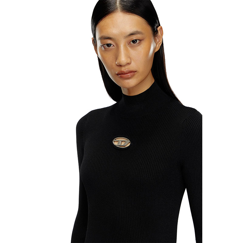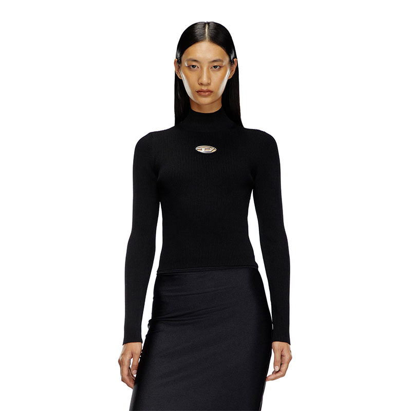 This women’s mock-neck top is rib-knitted for a close fit from a soft blend containing 83% viscose from responsibly managed forests. The metal Oval D plaque nestled in the chest cut-out shows off a hint of skin when the knit is worn without layers beneath.
