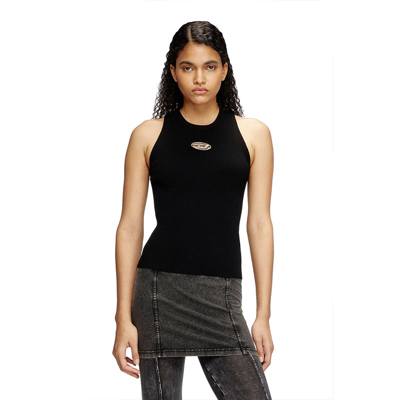 This women’s tank top is knitted from a soft blend containing 83% viscose from responsibly managed forests. The plated ribbing features contrasting textures on the front and back. The small metal Oval D plaque nestled in the chest cut-out shows off a hint of skin.