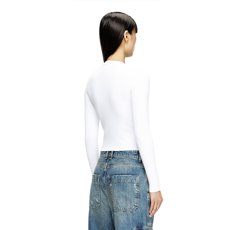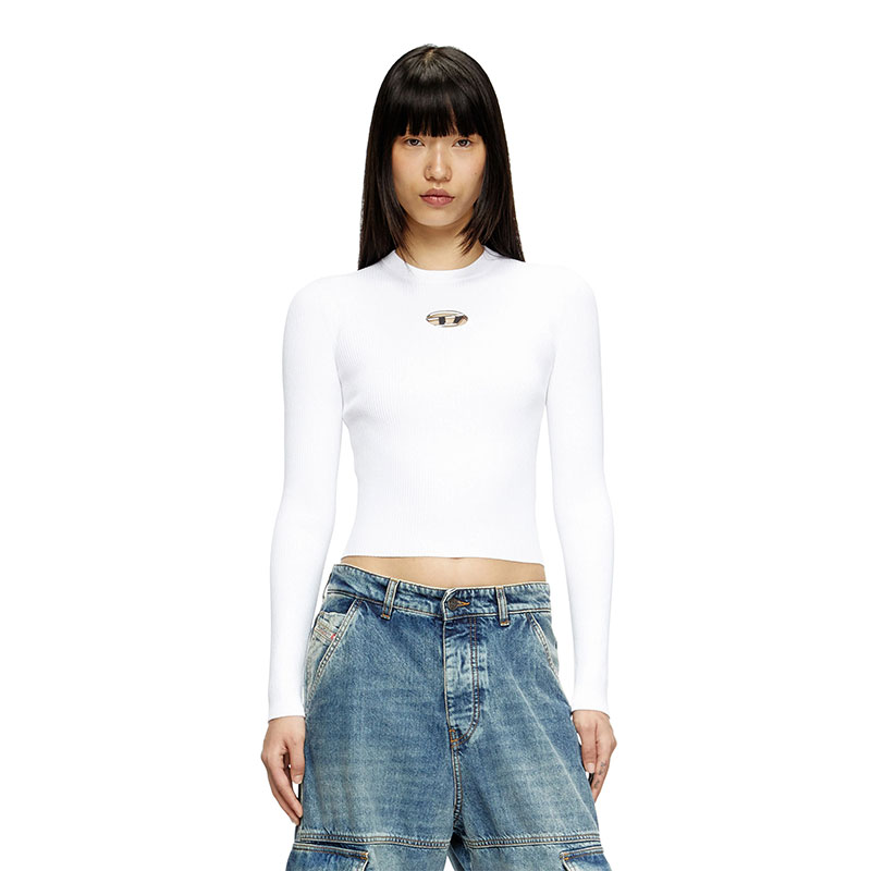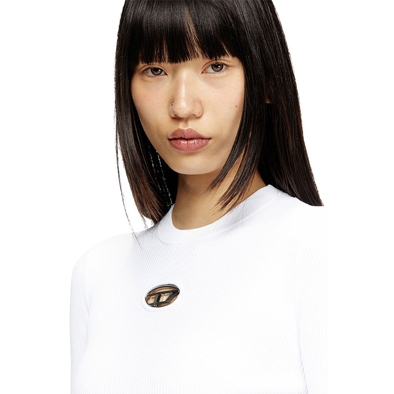 Women’s top in soft ribbed knit, spun from a blend containing viscose from responsibly managed forests. Designed for a close fit, this style has a crew neck and long sleeves. The metal Oval D plaque nestled in the chest cut-out adds a twist to a minimalist silhouette.