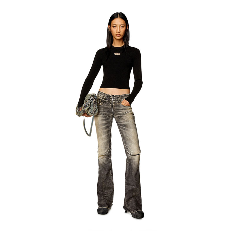 This women’s ribbed-knit top features an updated interpretation of the Oval D logo, rendered as a metal plaque inserted into the chest cut-out. The long-sleeve silhouette is snug yet flexible and has a slightly cropped hem.