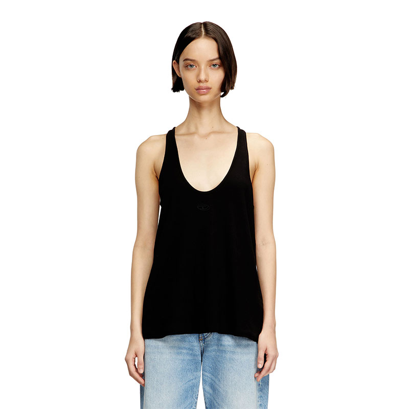 Part of the exclusive Fall Winter 2025 Runway Show collection, this women's scoop-neck tank top in organic cotton jersey flares fluidly over the body. Rib-knitted with a hint of stretch, it's embroidered with an Oval D logo in tonal yarn on the chest.