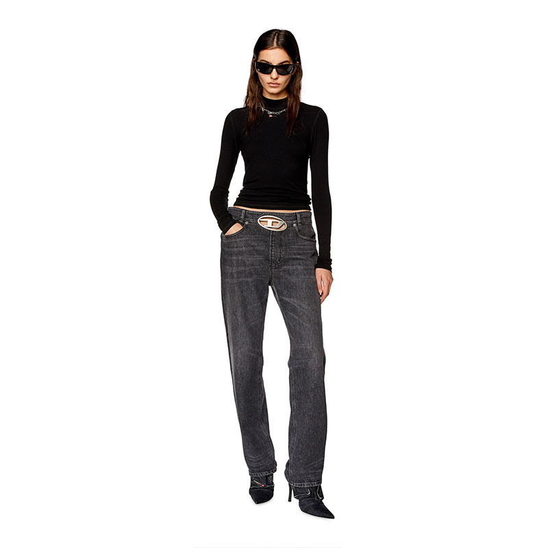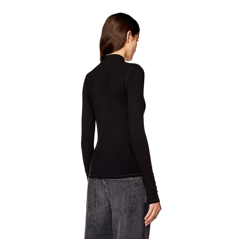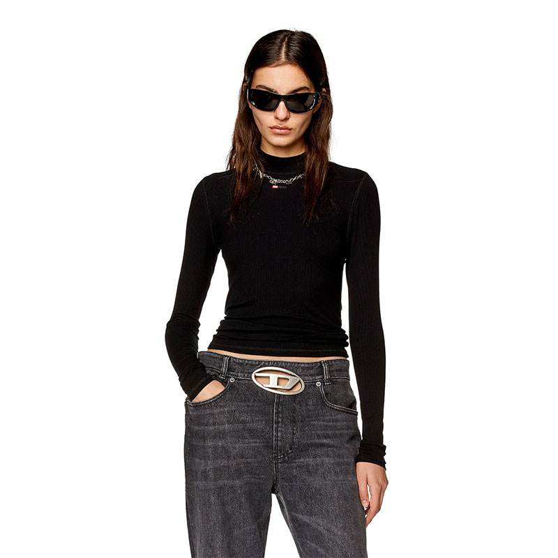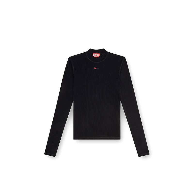 This women's mock-neck top is made from stretch rib jersey that contains Ecovero viscose for a skinny fit. Long-sleeved design with micro D initial embroidery on the front.