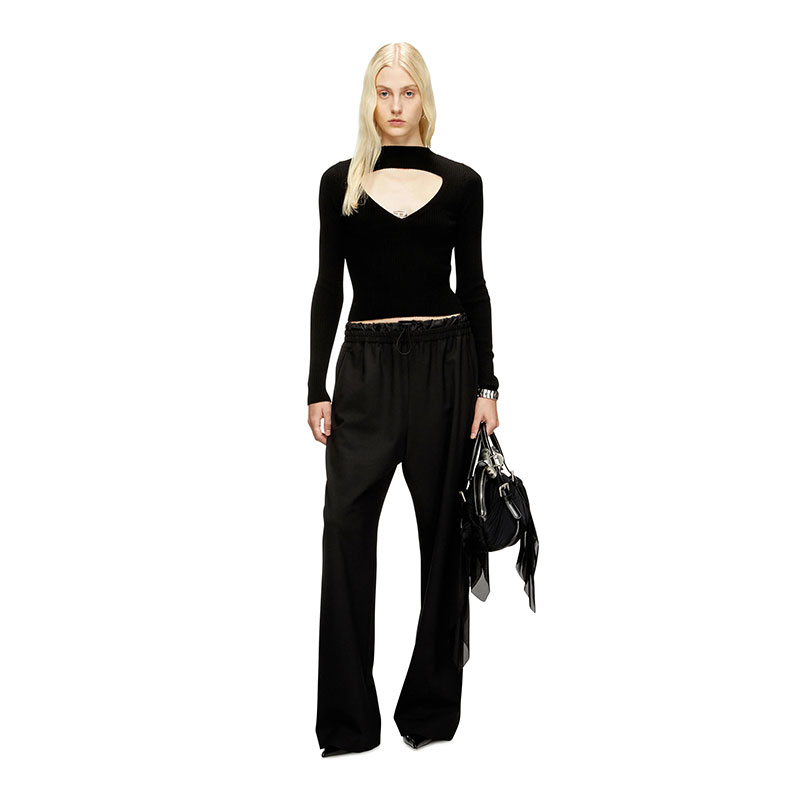 This women's ribbed-knit top features a mock neck and a bold V-shaped chest cut-out with Oval D hardware at the base – the embellishment is minimal yet strategic. It's spun from 100% responsibly sourced wool in a close-fitting silhouette.