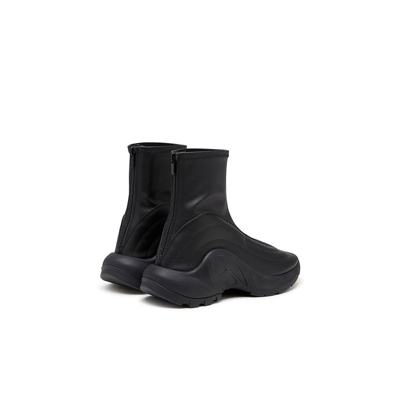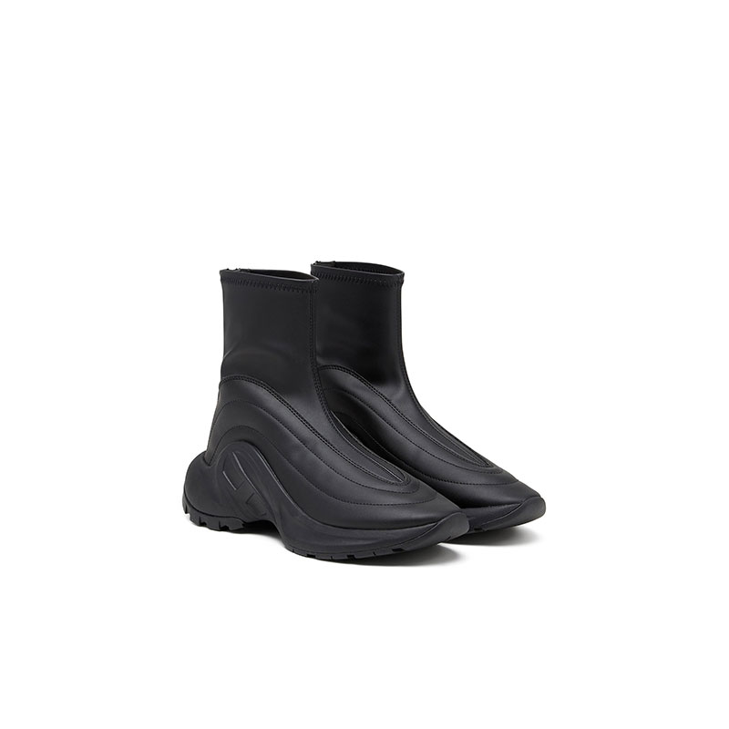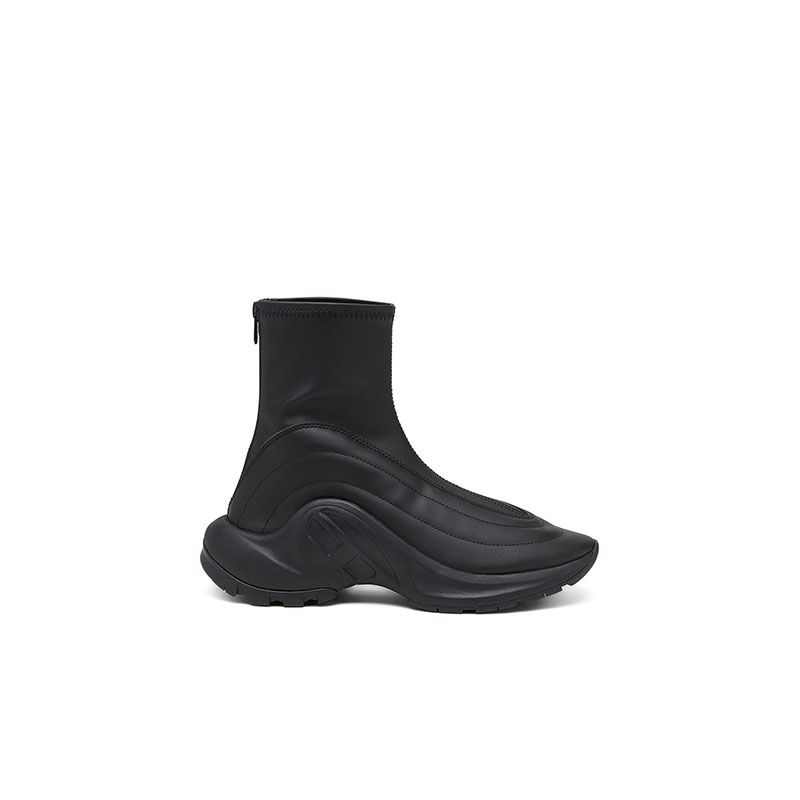 Sneakers with an above-the-ankle design and a snug silhouette with no laces. They offer a smooth and durable texture. The sturdy sole ensures stability and comfort. The Oval D logo detail on the side adds a distinctive and iconic touch. The whole is completed by side zippers that make them easy to put on.