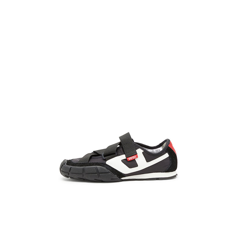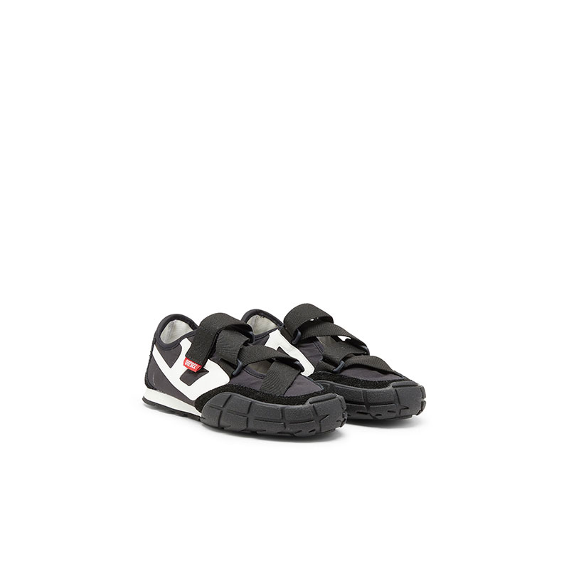 The ’70s runner, wired for the summer. In this women’s sneaker, out goes the tongue, in comes a grosgrain strap that locks the fit with a zig-zagging swagger – the open design boosts ventilation. Built from durable ripstop nylon with hairy suede and leather trims, it has a slightly squared off toe, lightweight EVA midsole and textured rubber outsole that rides high at the front. Slanted D logos stamp the side with attitude.