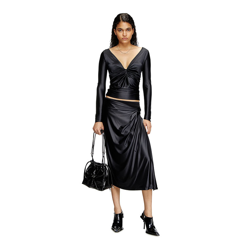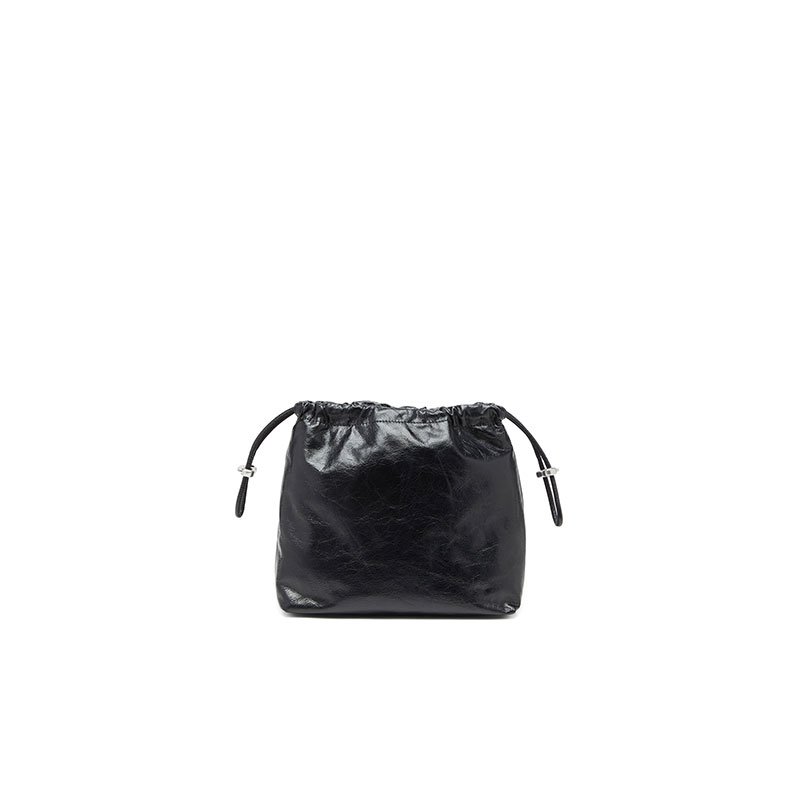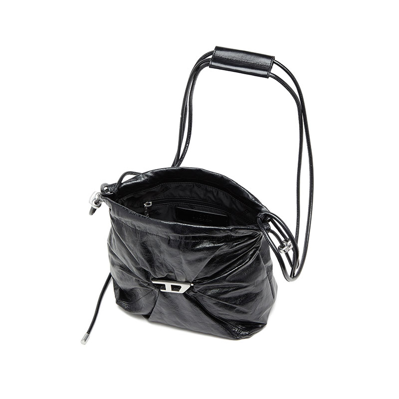 Diesel Women Scrunch-D-Bucket bag in shiny wrinkled leather Black X10325P1003