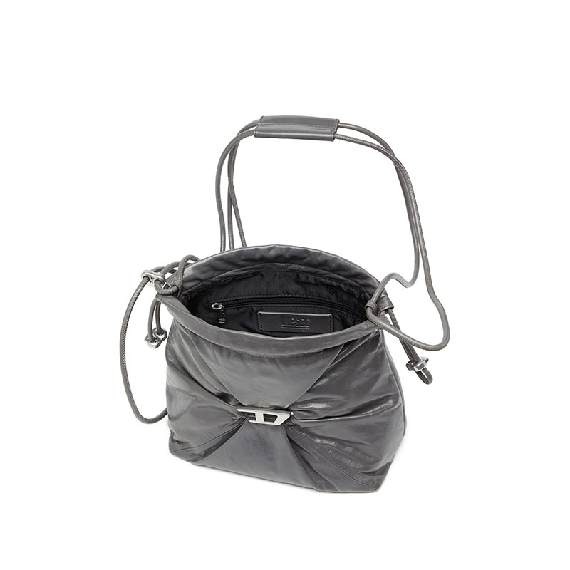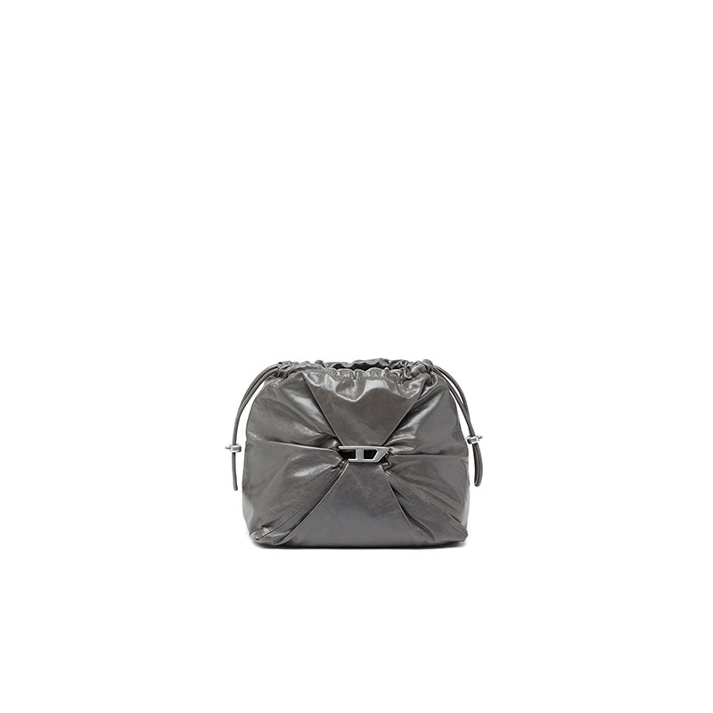 Diesel Women Scrunch-D-Bucket bag in shiny wrinkled leather Grey X10325P1003