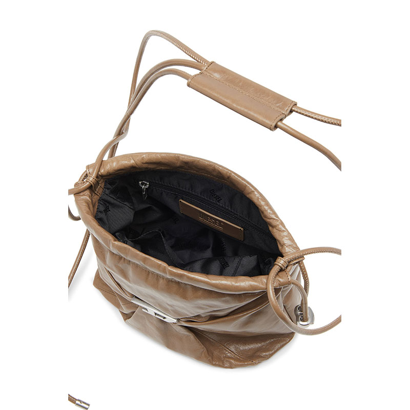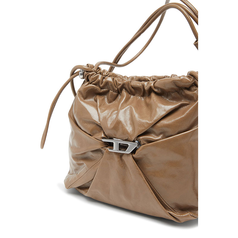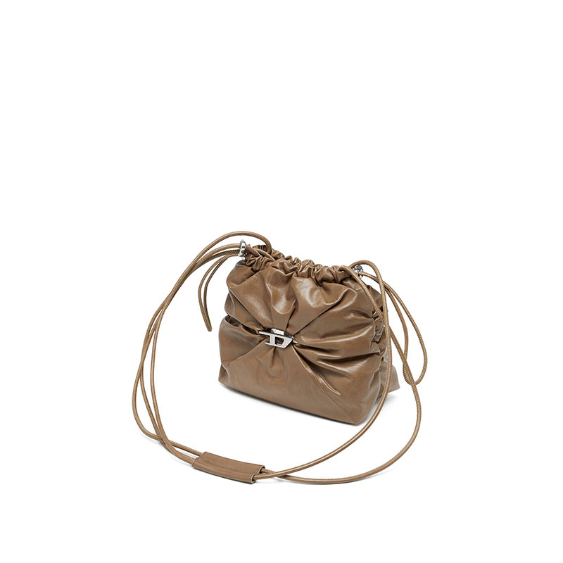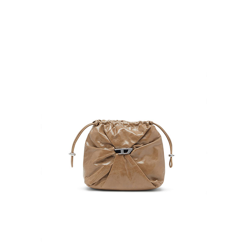 Diesel Women Scrunch-D-Bucket bag in shiny wrinkled leather Light Brown X10325P1003