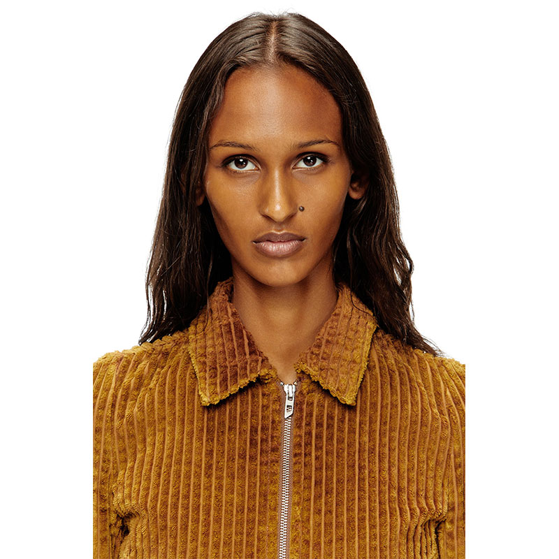 Made from wide-wale cotton corduroy, this women’s jacket feels velvety and textural. It’s cut in a fitted shirt silhouette with a point collar and subtly curved hem and has a lining for comfort. An embroidered Oval D logo decorates the sleeve.