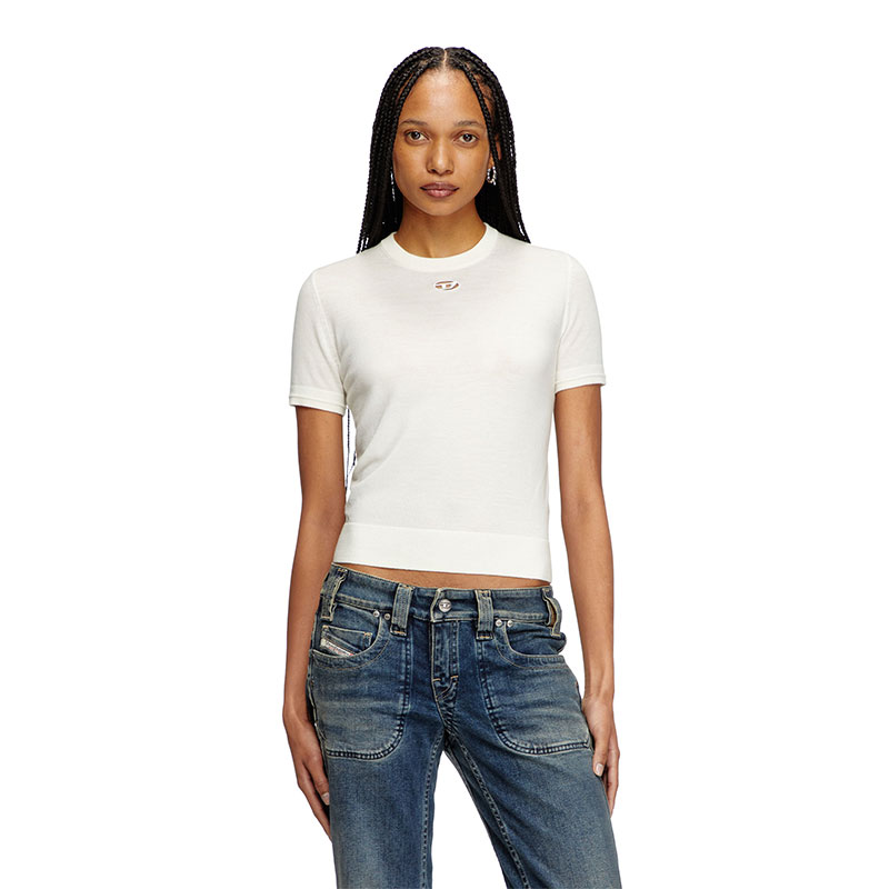 Subtle details set apart this women’s short-sleeve sweater – the cut-out embroidered Oval D logo allows for a flash of skin, while ridged ottoman stitches give the cuffs a little more dimension. It's knitted from responsibly sourced wool and has a regular fit.