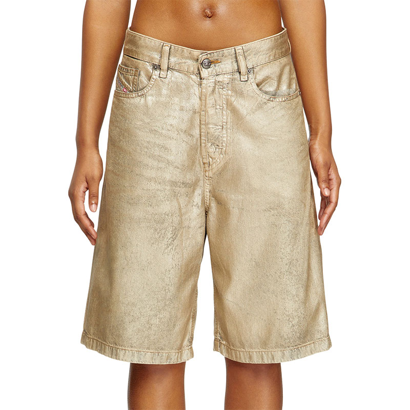 Diesel Women Shorts in distressed metallic denim Gold P01680068TS