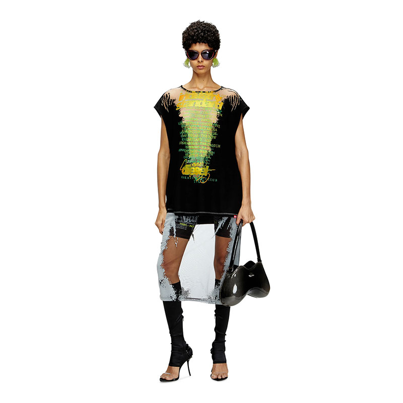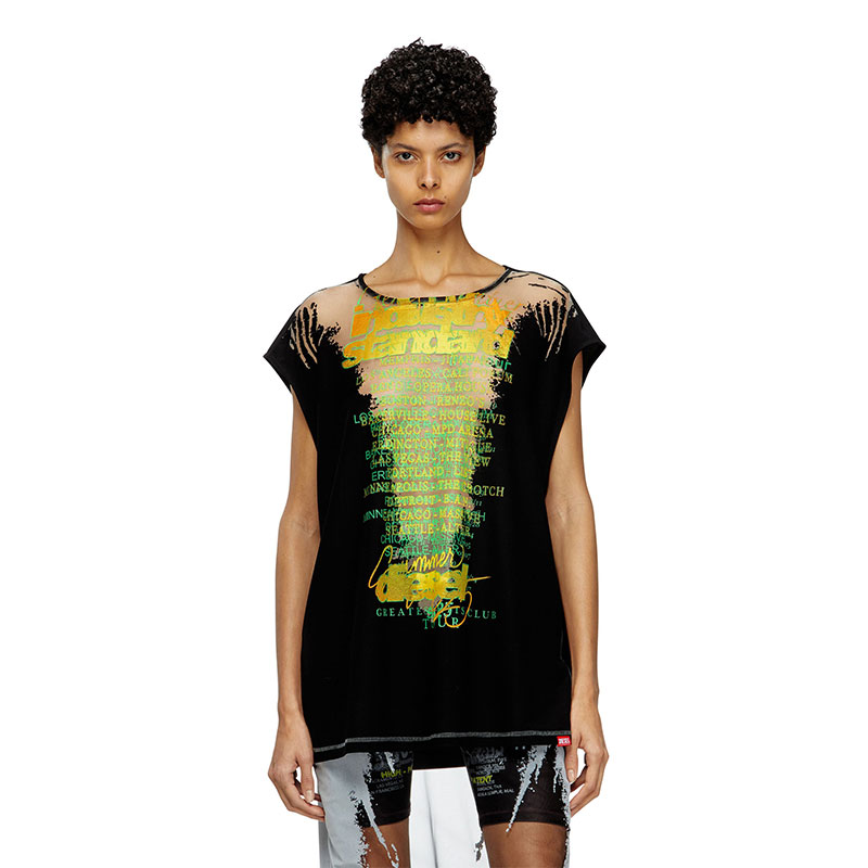 Diesel Women Sleeveless T-shirt with lyrics print Black A197340JLBR