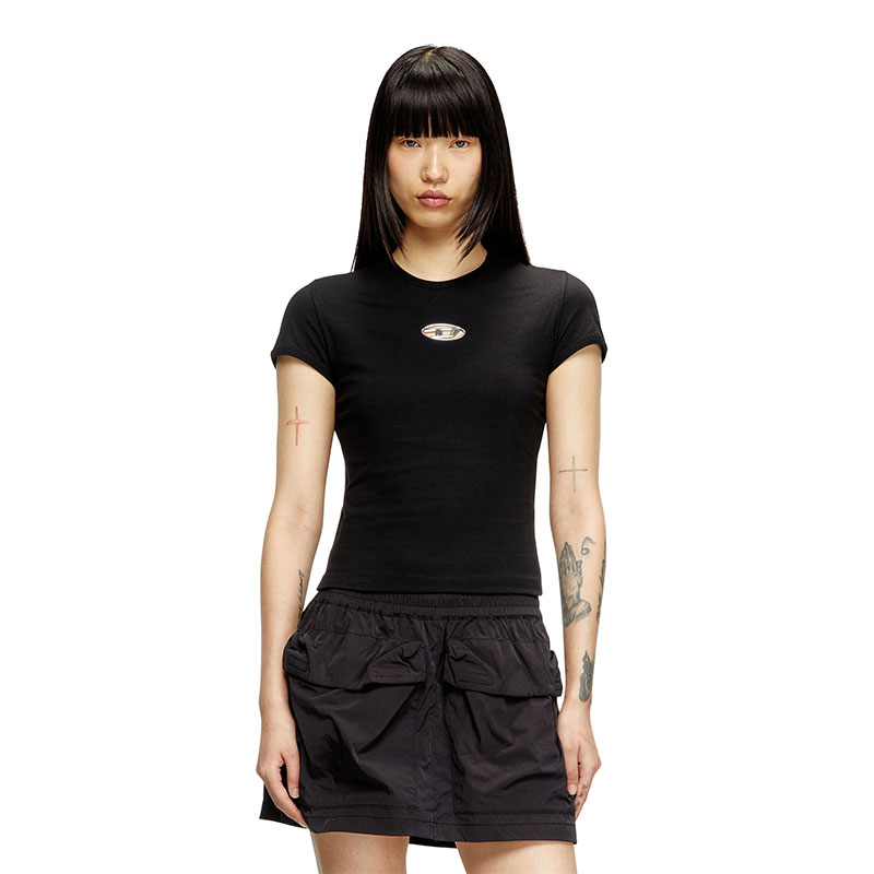 Diesel Women Slim fit T-shirt with cut-out Oval D Black A168390CLBR