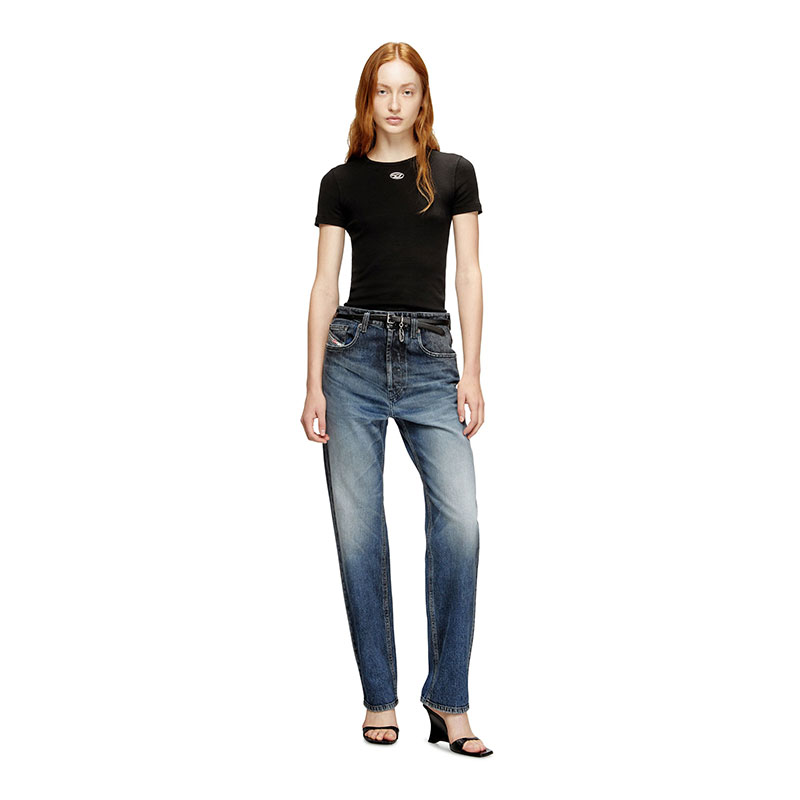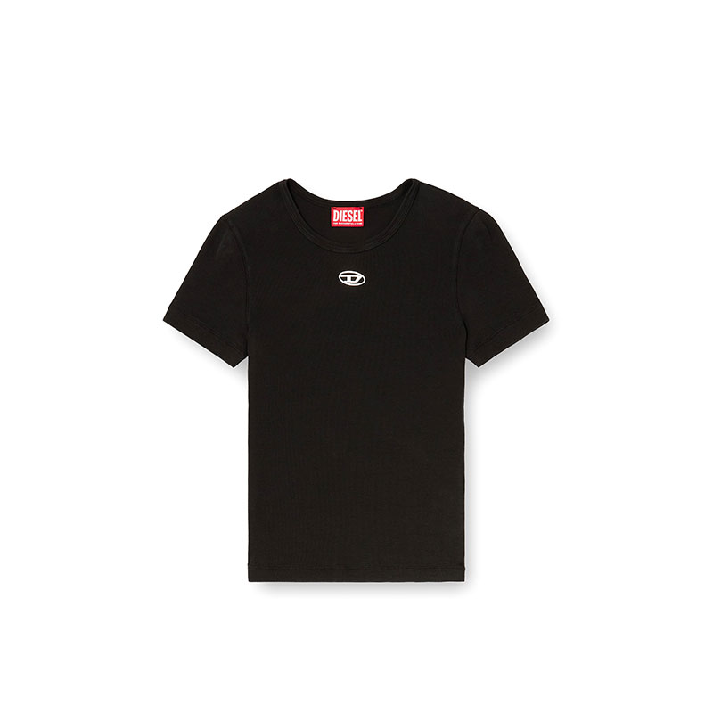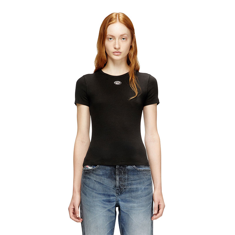 Diesel Women Slim ribbed T-shirt with metallic Oval D Black A199100JMBA