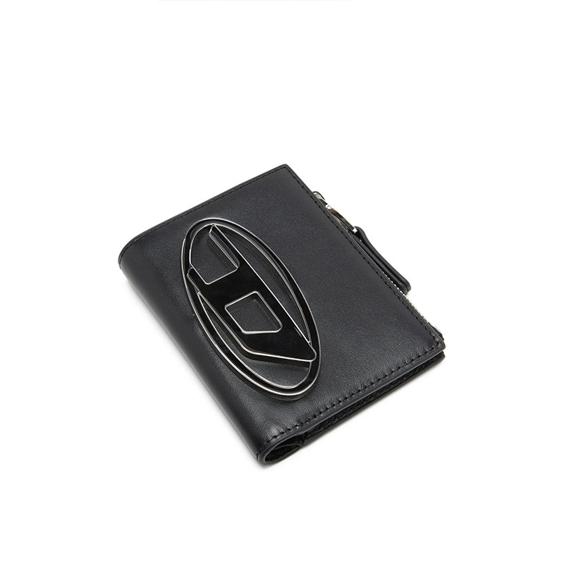 Women's wallet crafted from calf leather, embellished with a chunky Oval D plaque in enamelled metal. The compact, bi-fold design has a snap-fastening section for cards and notes and a quick-access coin pocket fastened with a zip.