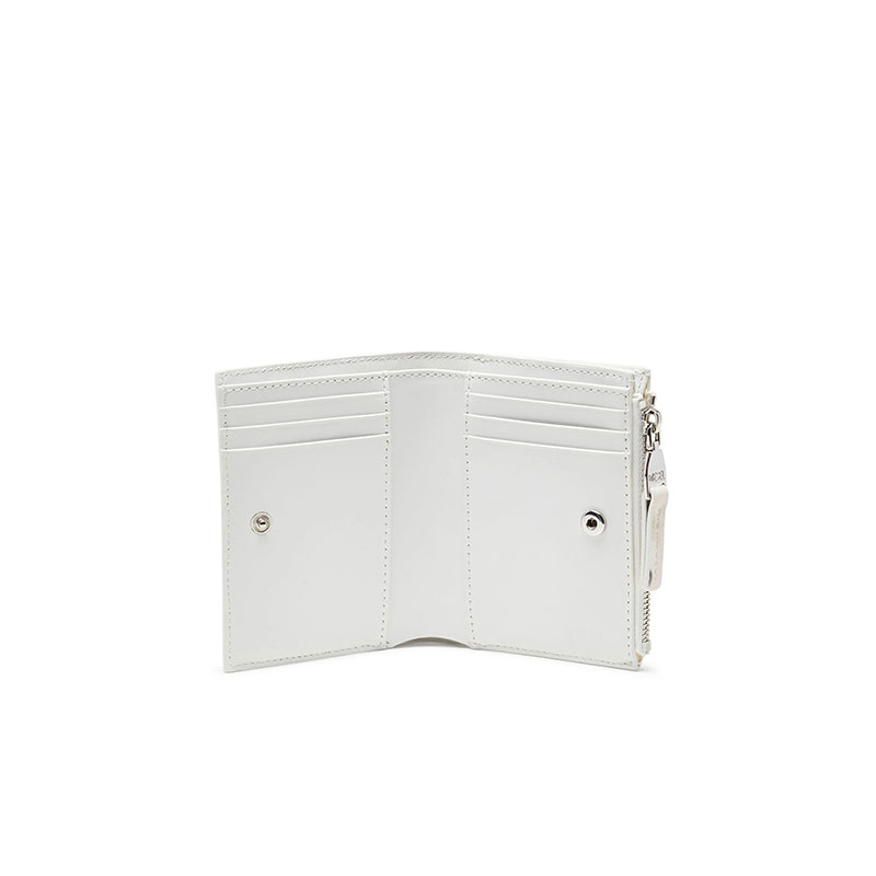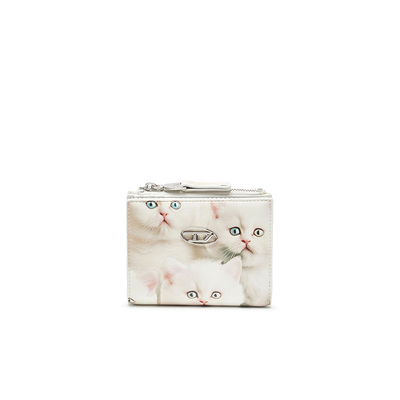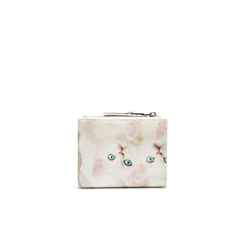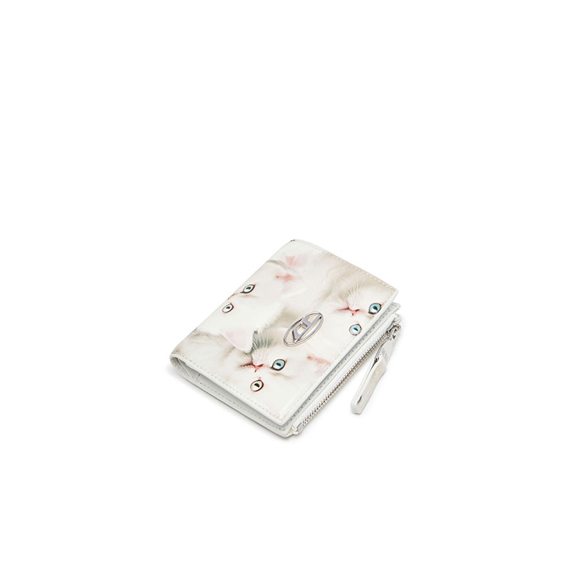 A snap-fastening bi-fold design, this women’s wallet is compact yet well equipped to store your cards, notes and coins. It’s built from glossy recycled PU that's printed all over with playful seasonal graphics. Detailed with a small metal Oval D.