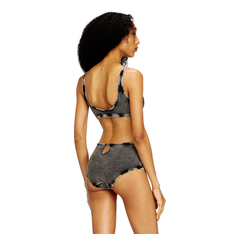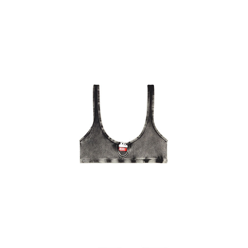 Bralette in stretch cotton rib fabric, featuring an all-over garment-dye with marble wash treatment for a distinctive worn-in look. The central cut-out detail on the front is embellished with a rhinestone-studded Oval D logo, adding a bright focal point to the design.