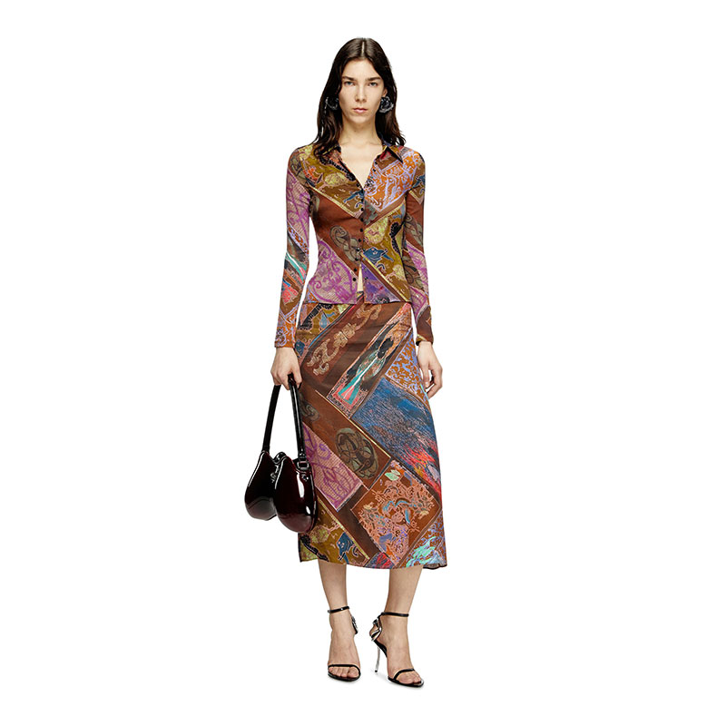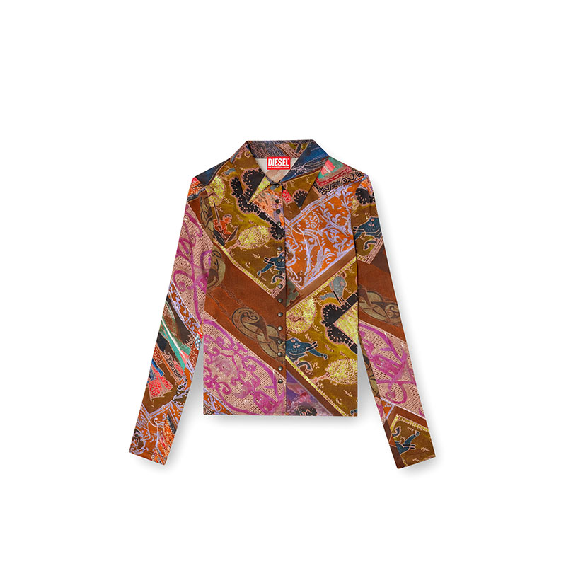 Diesel Women Stretch-viscose shirt with Heraldic print Brown A196190ILBU