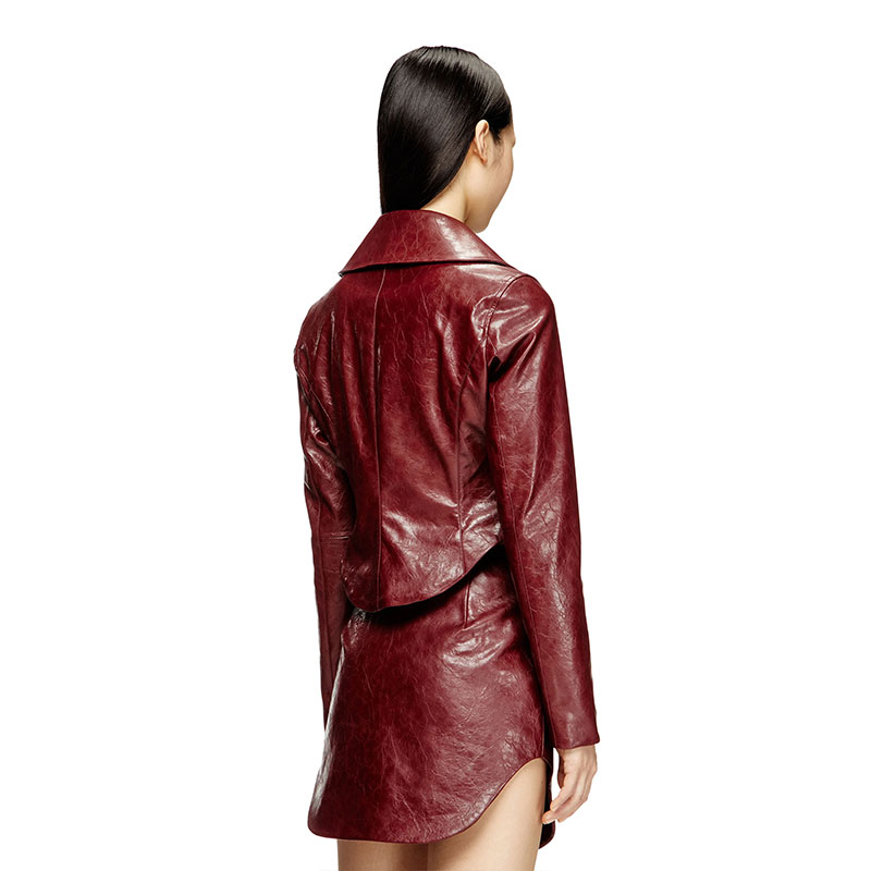 A subversion of tailoring, this women’s jacket is crafted from supple coated fabric with a lustrous shine and textured hammered finish. Wide notched lapels and a curved shirt-style hem define its slim silhouette, finished with a lightly padded quilted lining. This style fastens with hidden snaps and features an embossed Oval D logo on the sleeve.