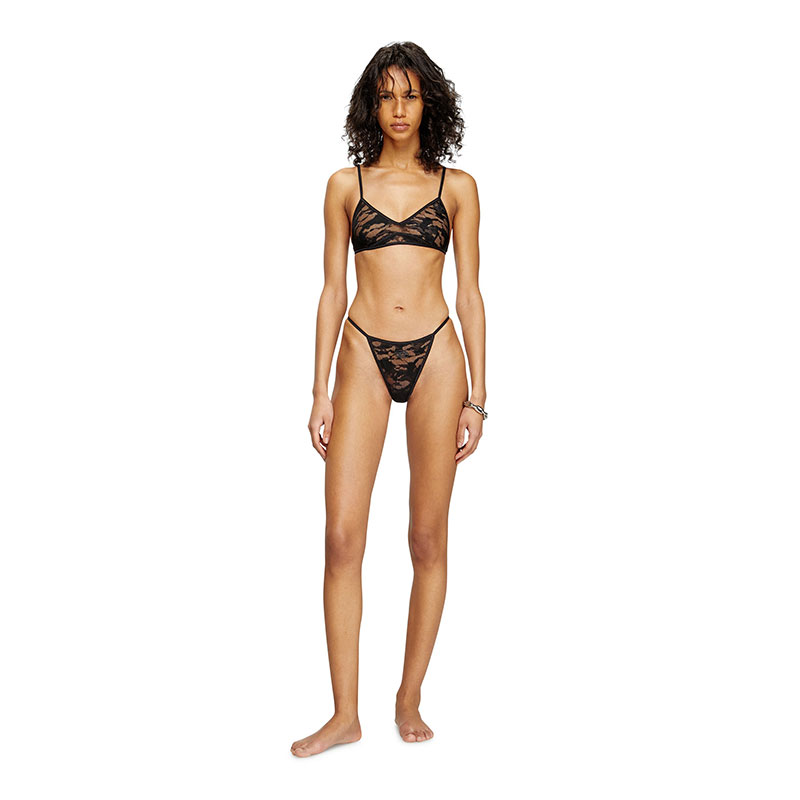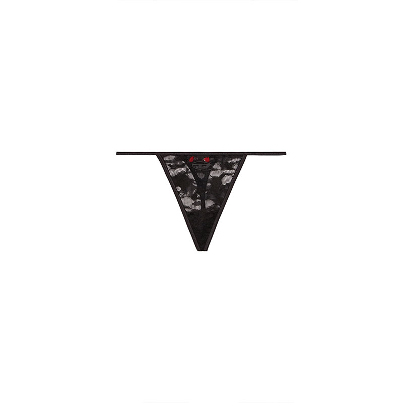 This women's sheer thong is cut from stretchy jacquard lace with a utilitarian camouflage motif. A tonal Oval D logo embellishes the front.