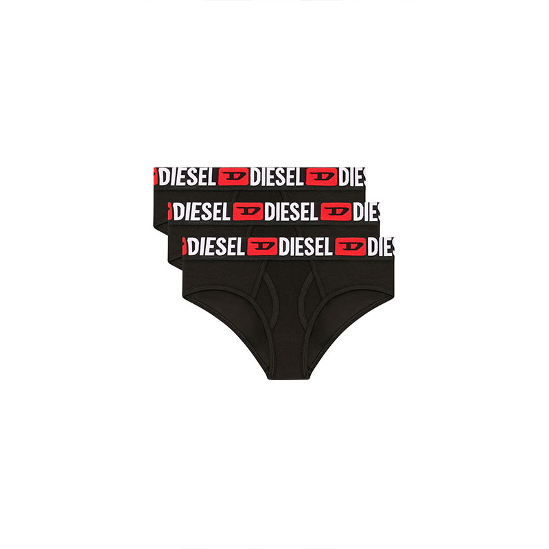 Women’s low-rise briefs inspired by men’s styles. This pack of three is made from stretch cotton and topped with a chunky jacquard waistband that’s decorated all-over with the iconic Denim Division ‘D’ and block Diesel lettering.