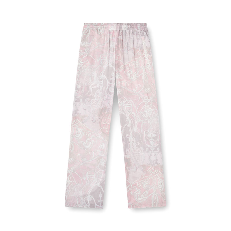 Tracksuit bottoms in TENCEL Lyocell muslin. Breathable and airy, these unisex trousers recontextualise a sporty design with medieval-inspired printed artwork in muted tones. They have a regular fit and an elasticated drawstring waist. An embroidered Oval D logo accents the back.