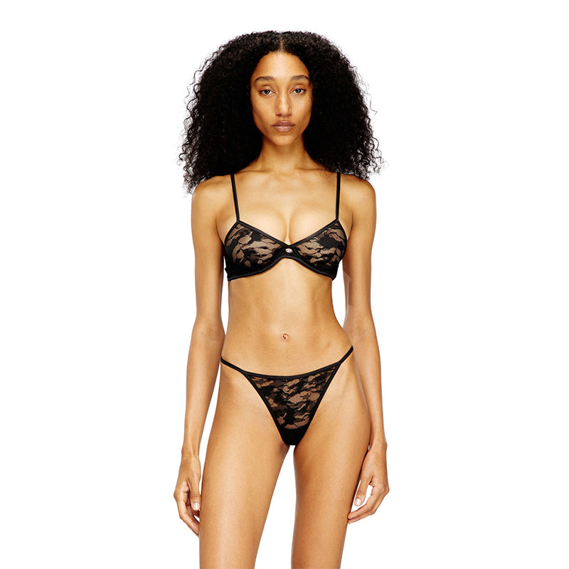Underwire bra with a sophisticated design in nylon and elastane, ensuring excellent elasticity and adaptability. The all-lace texture gives a refined effect. Adjustable straps ensure maximum comfort and support. A small Oval D logo adds an iconic and distinctive touch to the garment.