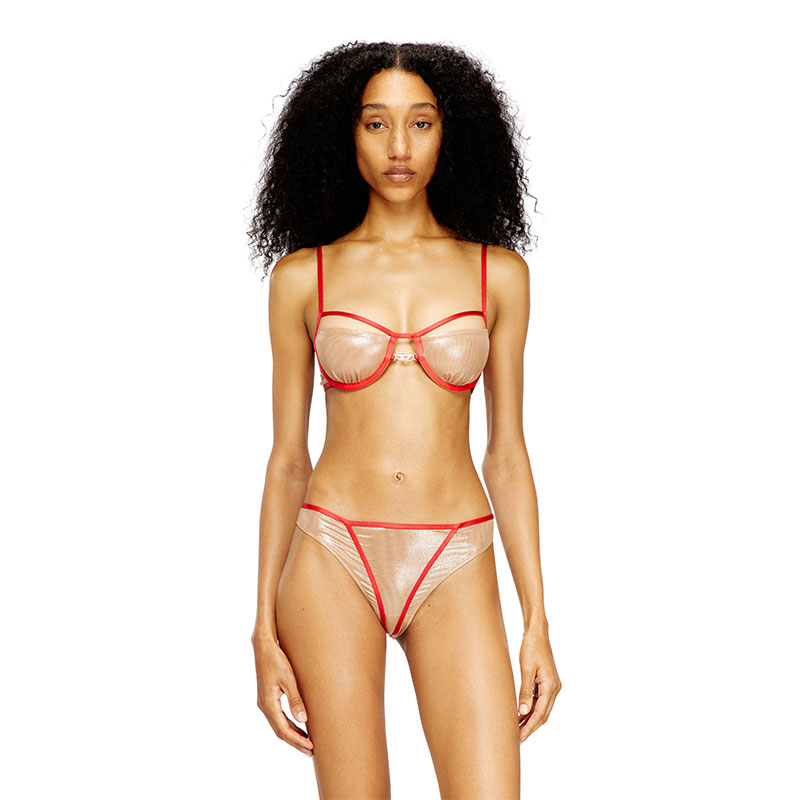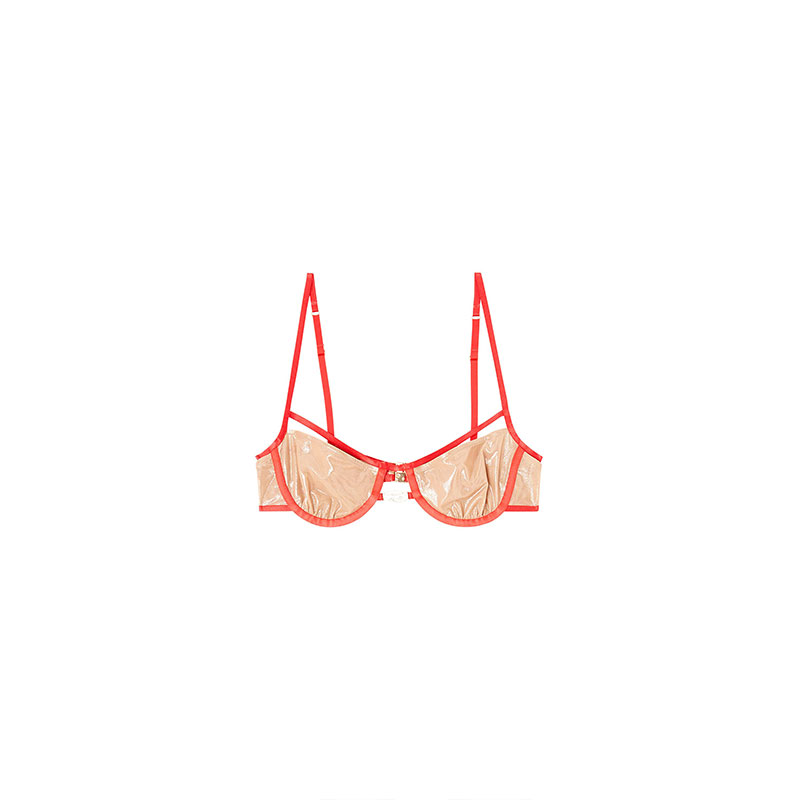 Underwire bra from the Intimate collection, made of soft nylon with a touch of elasticity that ensures comfort and support. The structure stands out for its sophisticated play of transparencies, while contrasting harness-effect outlines define the silhouette. The piece is completed by thin adjustable straps and a rhinestone-studded Oval D logo, positioned centrally for a distinctive touch.