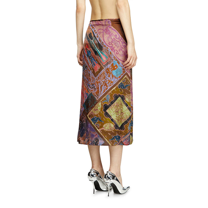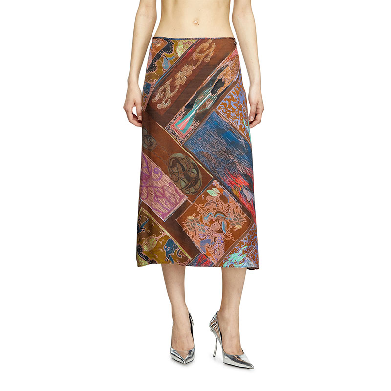 Made from a blend of responsibly-sourced and ECOVERO fibers, this women's viscose midi skirt hangs fluidly in a regular-fitting A-line cut. The striking printed artwork is a riff on medieval heraldic tiles and features a patchwork of patterns and effects. Finished with a metal Oval D logo at the waist.